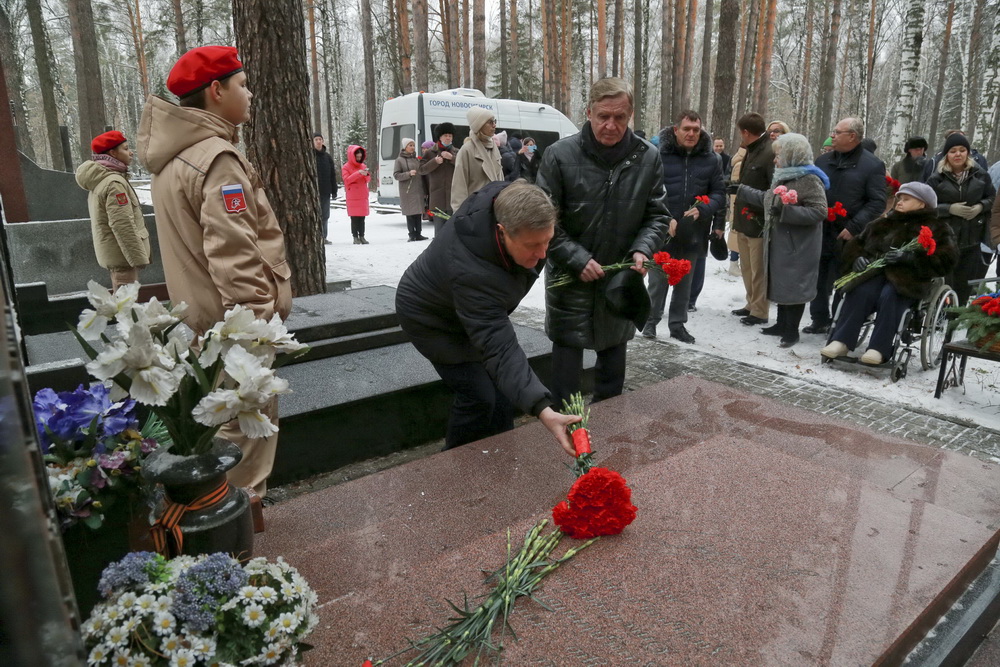 100 лет герою: мэр Локоть возложил цветы к могиле Дмитрия Бакурова