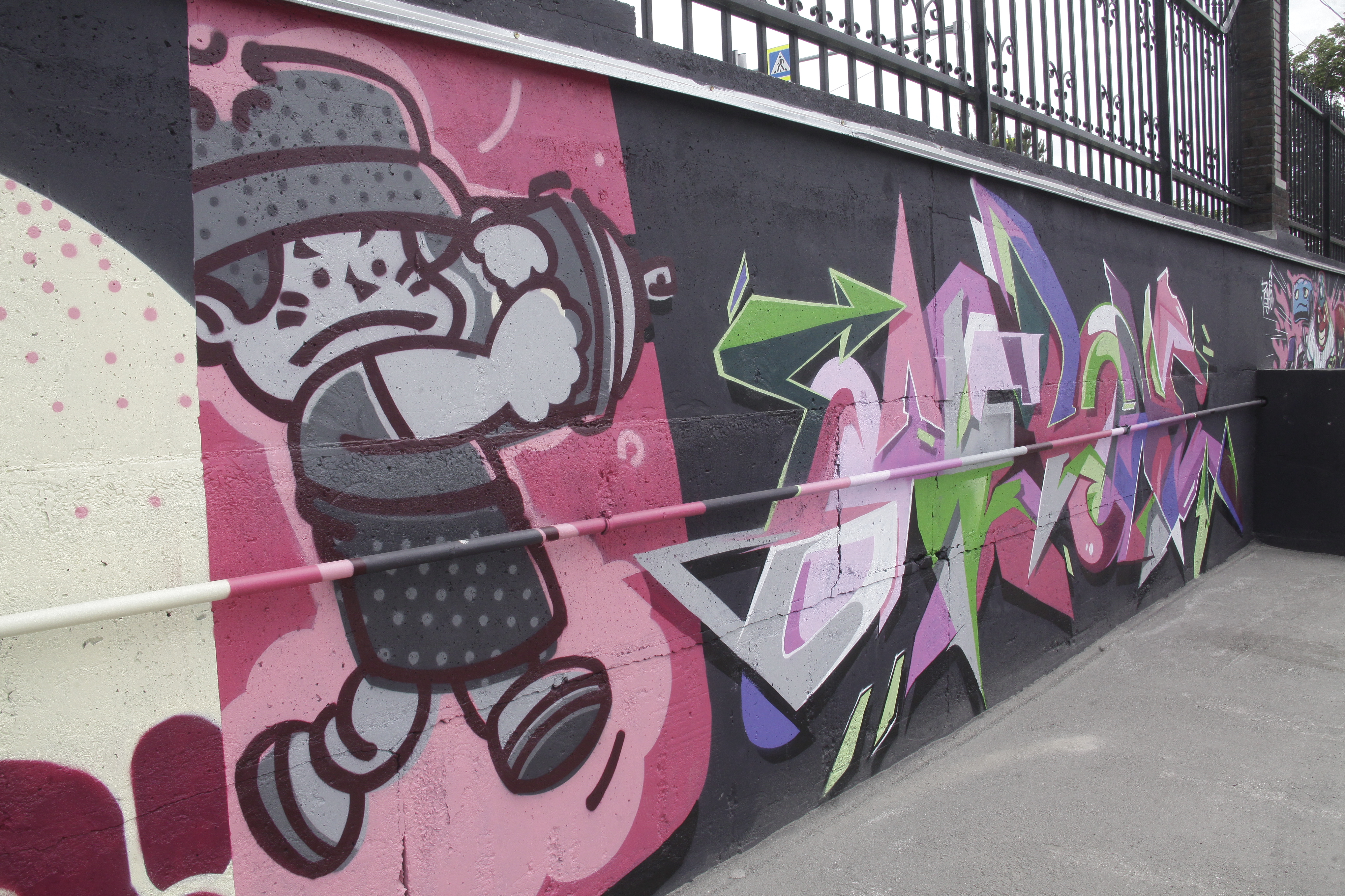 Художники продолжают заполнять пустые стены Новосибирска своими работами. На минувшей неделе многие заметили, что в лофт-квартале на Фабричной вокруг торгово-выставочного комплекса CUBIC появилось ещё одно масштабное граффити. Стену протяжённостью почти 500 метров за несколько дней разрисовали команды из Новосибирска, Москвы, Санкт-Петербурга, Кемерова и Белоруссии.