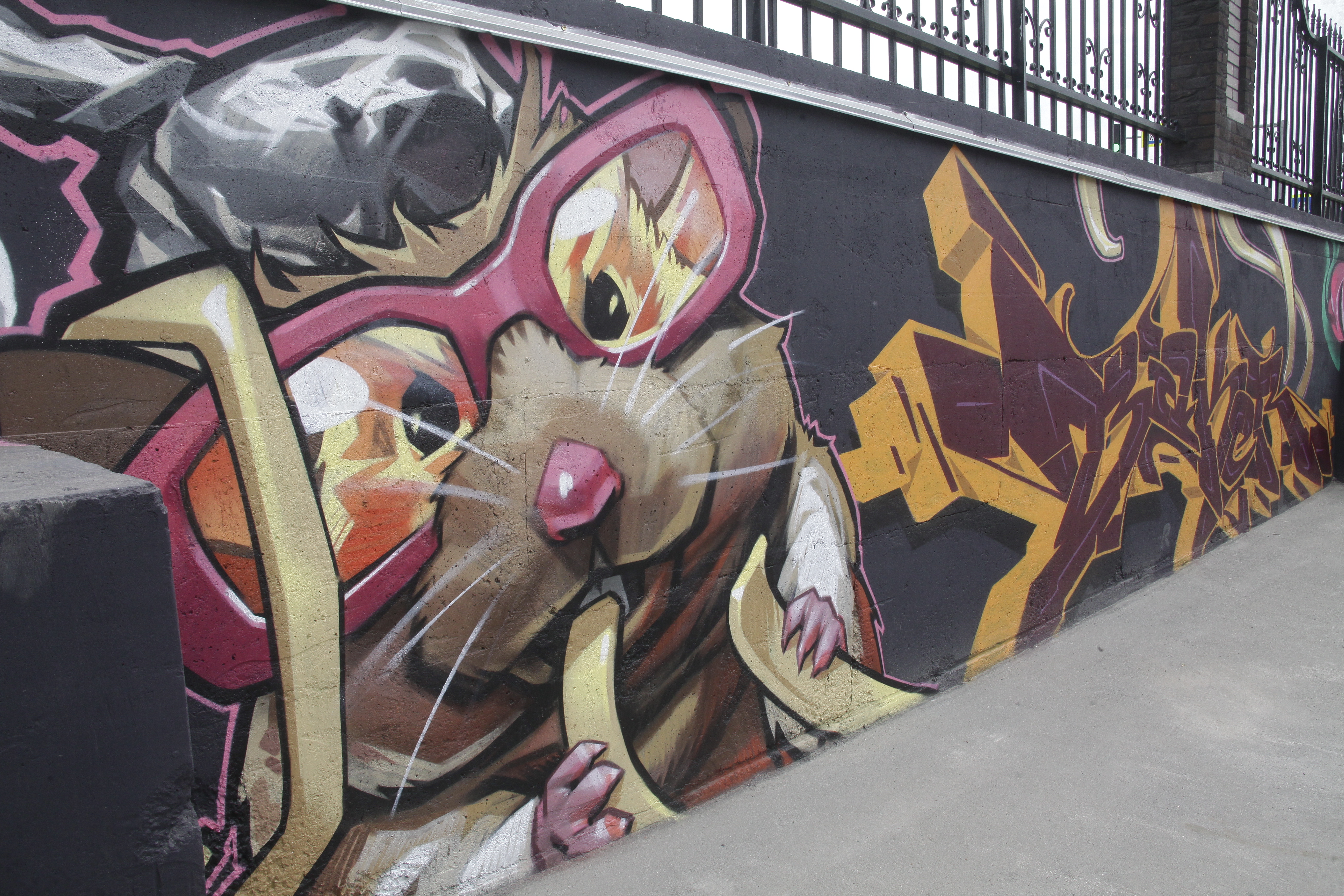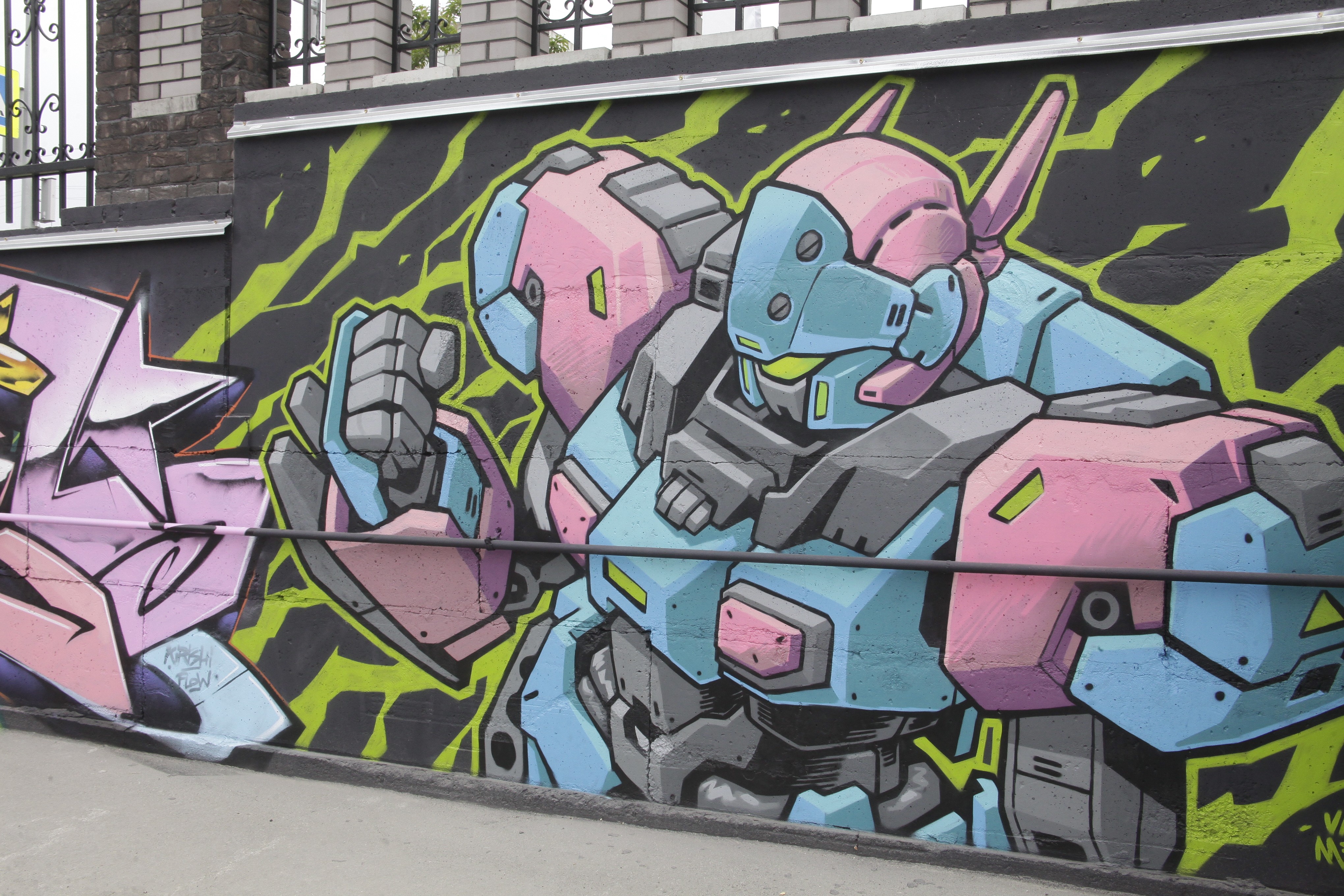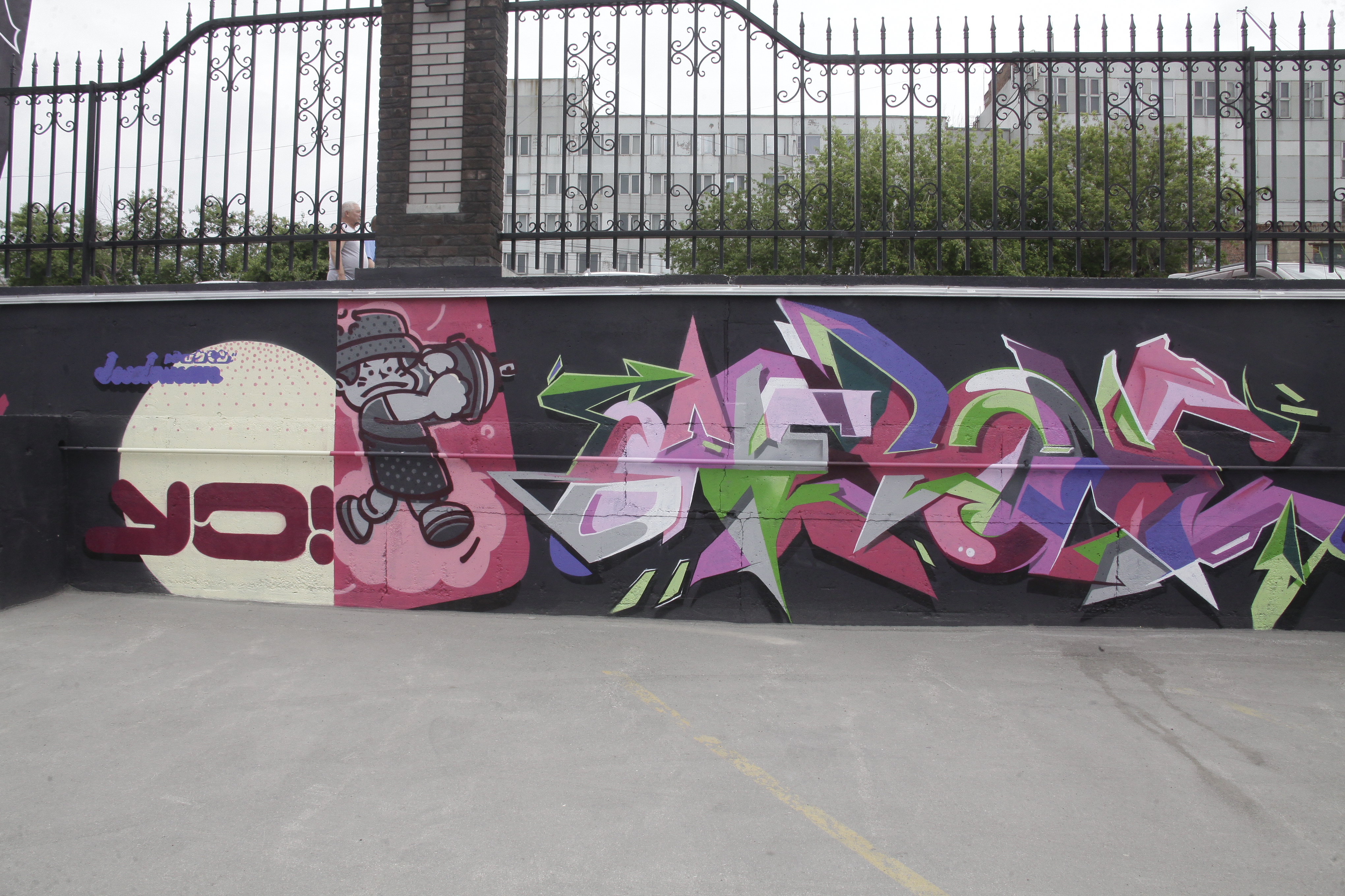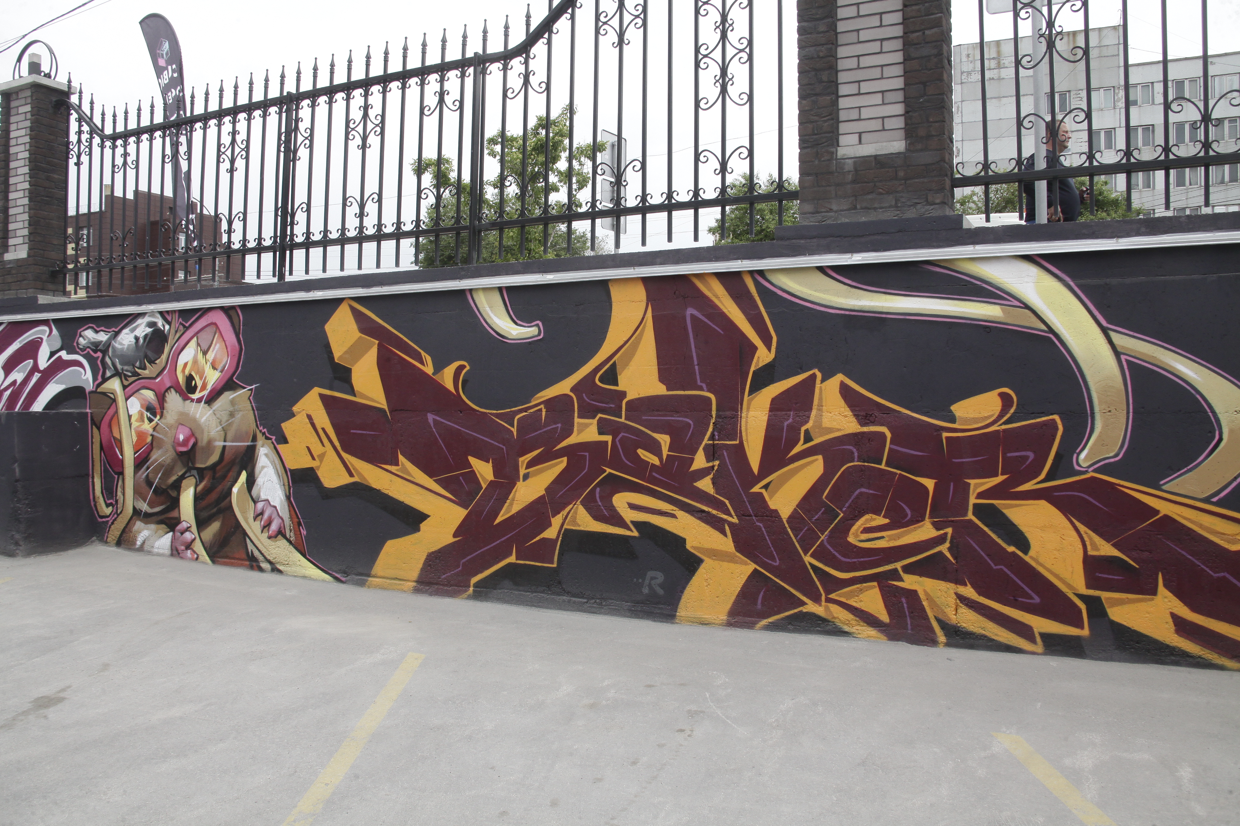 Среди участников мини-фестиваля граффити, который без лишнего шума провели новосибирцы Роман Есин и Иван Ягода, оказался и очень известный столичный граффитист Дима Rasco. Этот художник, в шутку называющий себя вандалом, имеет свой узнаваемый стиль. Его работы объёмны, на них много деталей, бликов, мастер смело использует яркие цвета. Что в итоге получилось, художник показал на своей странице в Instagram.
