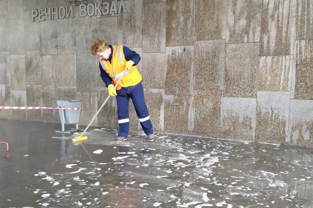 По итогам работы вывезли 121 тонну мусора, отмыли от пыли входы и павильоны станций метро.