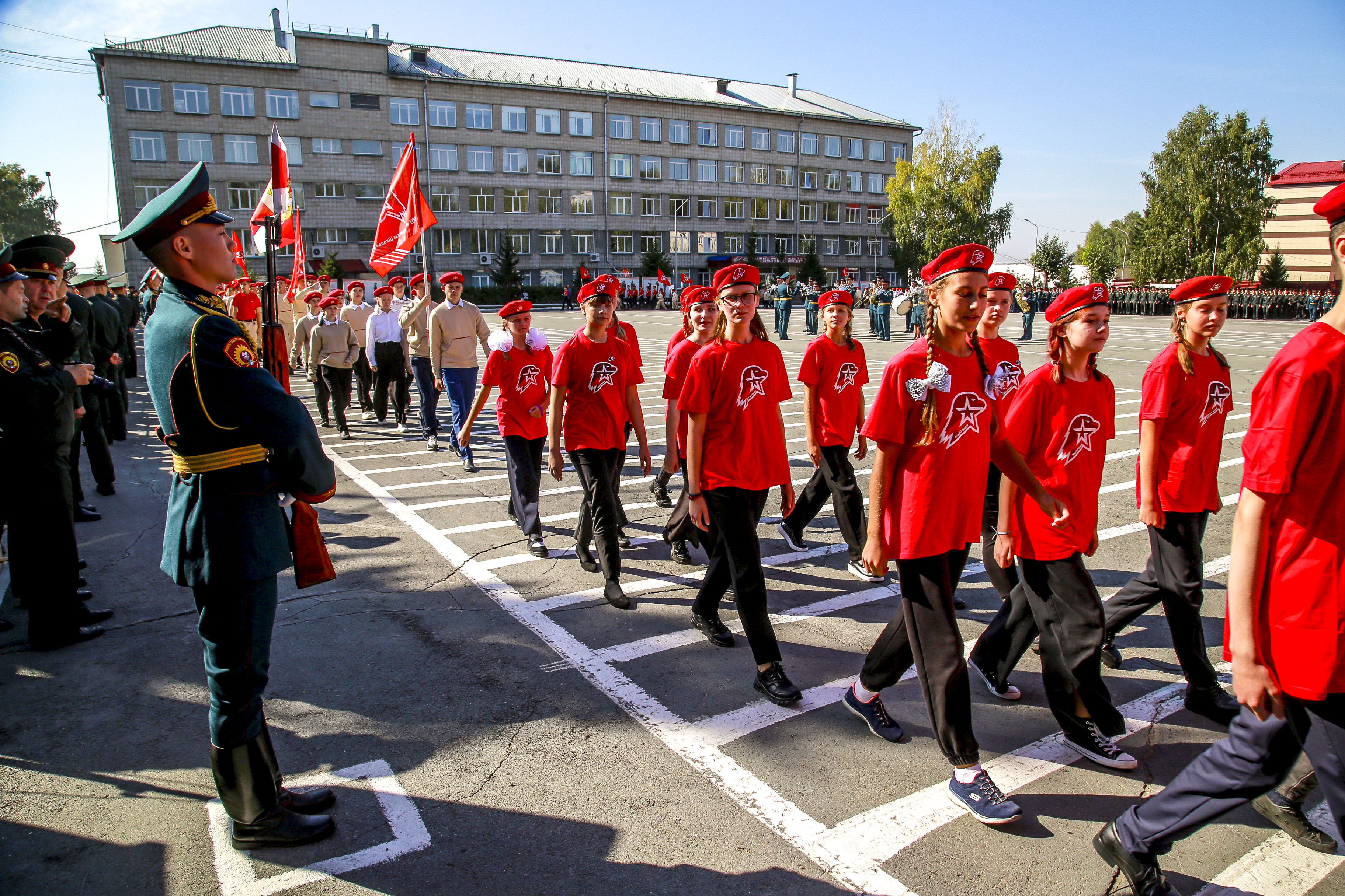 В этот же день на площадке у НВИ в ряды «Юнармии» вступили 50 школьников Новосибирска — принесли торжественную клятву юнармейца.