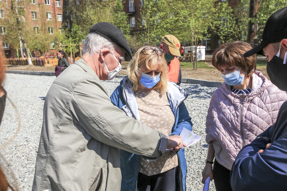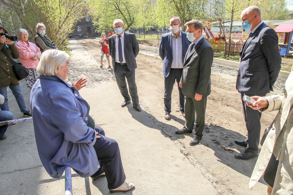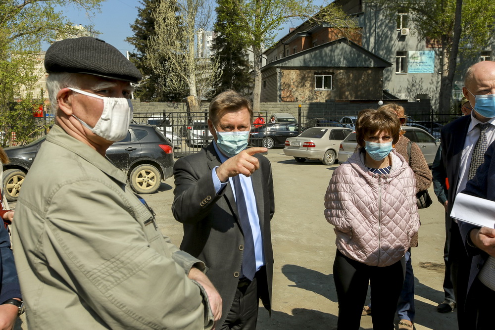 Ход и качество работ на месте проверяет мэр Новосибирска Анатолий Локоть. Председатель местного товарищества собственников жилья Вадим Вихров попросит продлить бордюр.