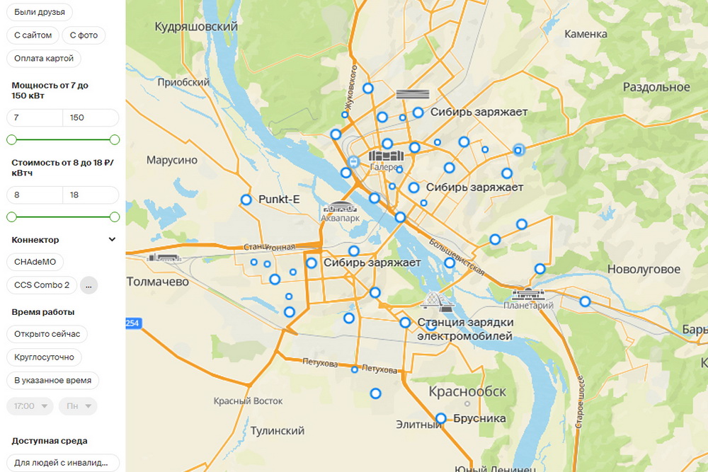 По данным компании, сейчас общедоступные электрозаправки есть более чем в 500 населённых пунктах России. За последний год количество ЭЗС увеличилось вдвое — до 3225. В Новосибирске на карту нанесено 83 таких точки.