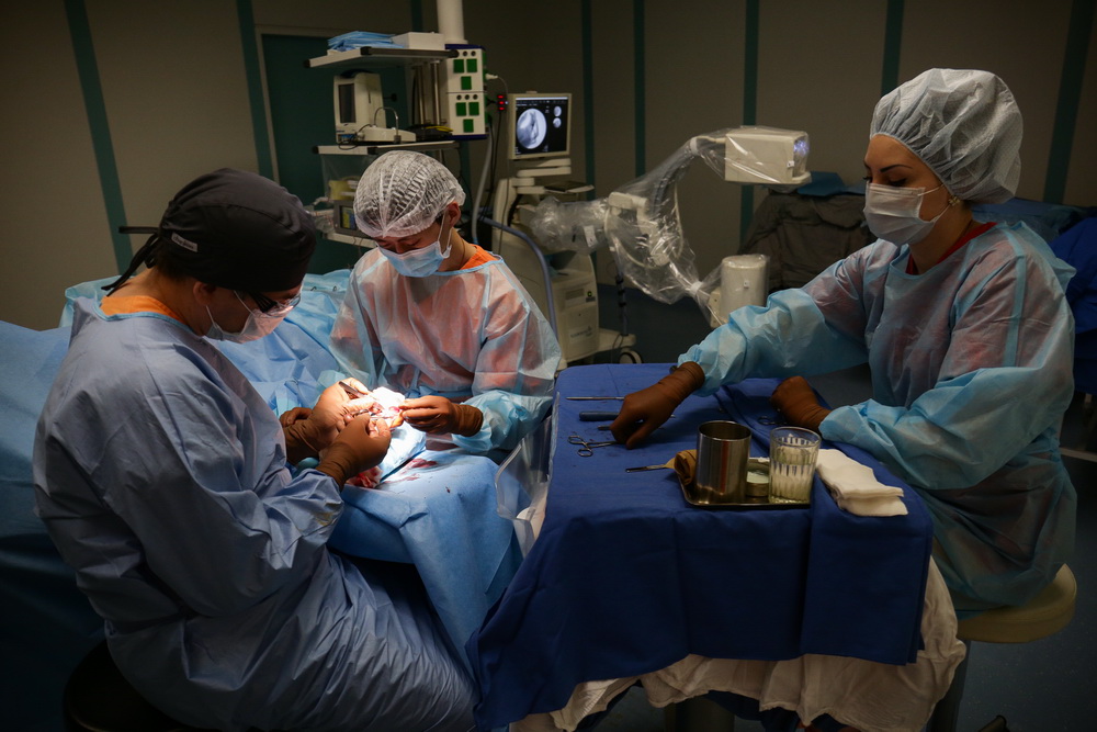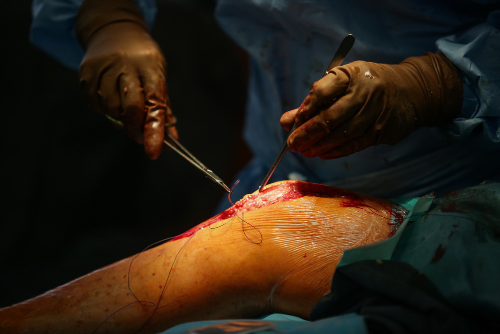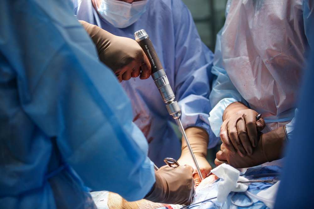 Подвижность возвращает операция. В ход идут обычные инструменты ортопедов ― скальпели и пилы. Во время трёхчасовой процедуры хирург удаляет костную муфту, освобождая заблокированный сустав. Операция сложная, задействованы локтевой нерв, трицепс, связки. Всё это нужно не повредить и аккуратно освободить от кости.