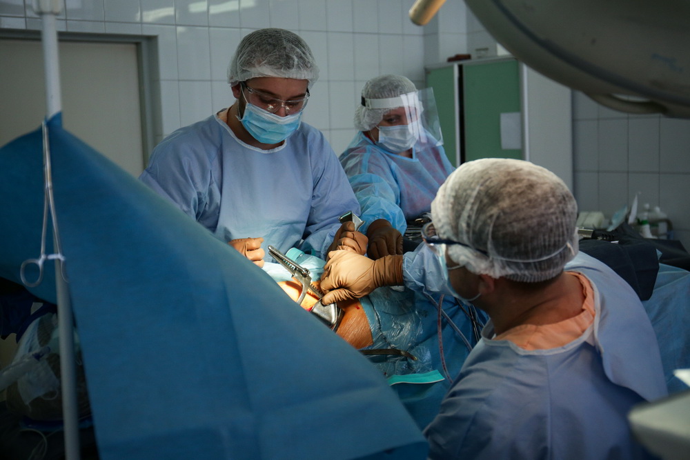 В конце операции проводят костную пластику ― укладывают собственные кости пациента в зону инструментария. Благодаря этому позвоночник срастается и остаётся прямым. Вся процедура длится четыре часа.