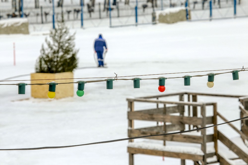 Прокат коньков — 156 рублей, для пенсионеров и детей до 14 лет — 83 рубля. Остались мелочи: установить кассу, повесить гирлянды, настроить звук.
