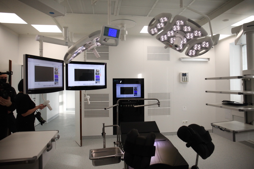Современный комплекс систем телемедицины установили в операционной. Такое оборудование снимает процедуру с трёх точек — с обзорной камеры в углу операционной, с камеры на хирургическом светильнике и с камеры на инструменте хирурга. Техника транслирует эти видео на экраны по всему помещению. Полную картину происходящего видит не только главный оперирующий хирург.