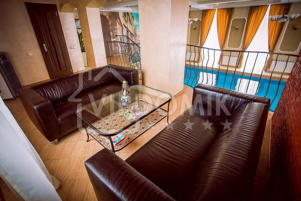 Коттедж площадью 500 кв. метров на участке 10 соток в Ленинском районе Новосибирска. Вмещает до 40 человек. Коттедж оборудован профессиональной техникой, танцевальной комнатой с шестом, караоке. Есть сауна и два бассейна с подогревом. Бильярдная и все спальни — с индивидуальным дизайном с ярким цветовым оформлением.