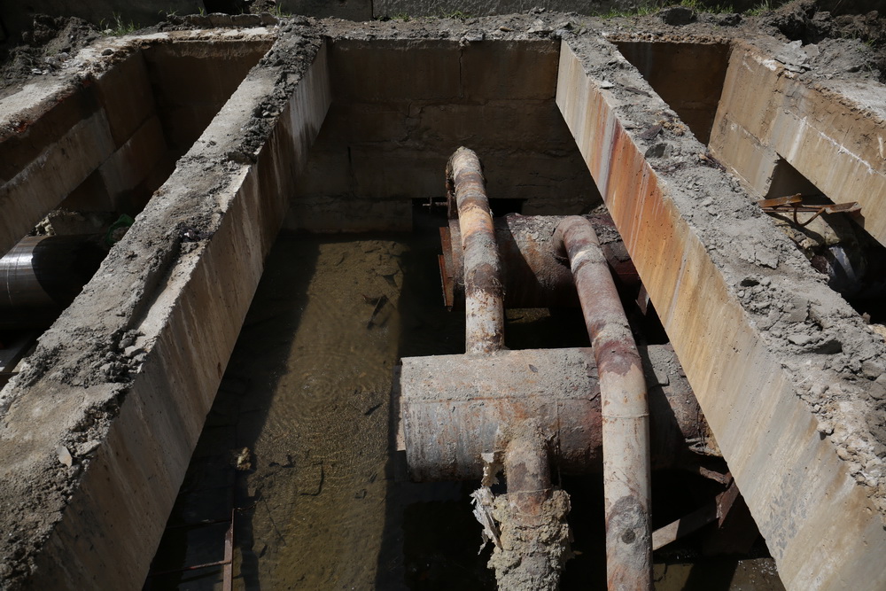 Затем сверху трубы накроют железобетонными конструкциями, изолируют швы и засыплют землёй. Местные жители неудобств не испытывают, во время ремонта горячая вода в дома идёт по резервным трубам.