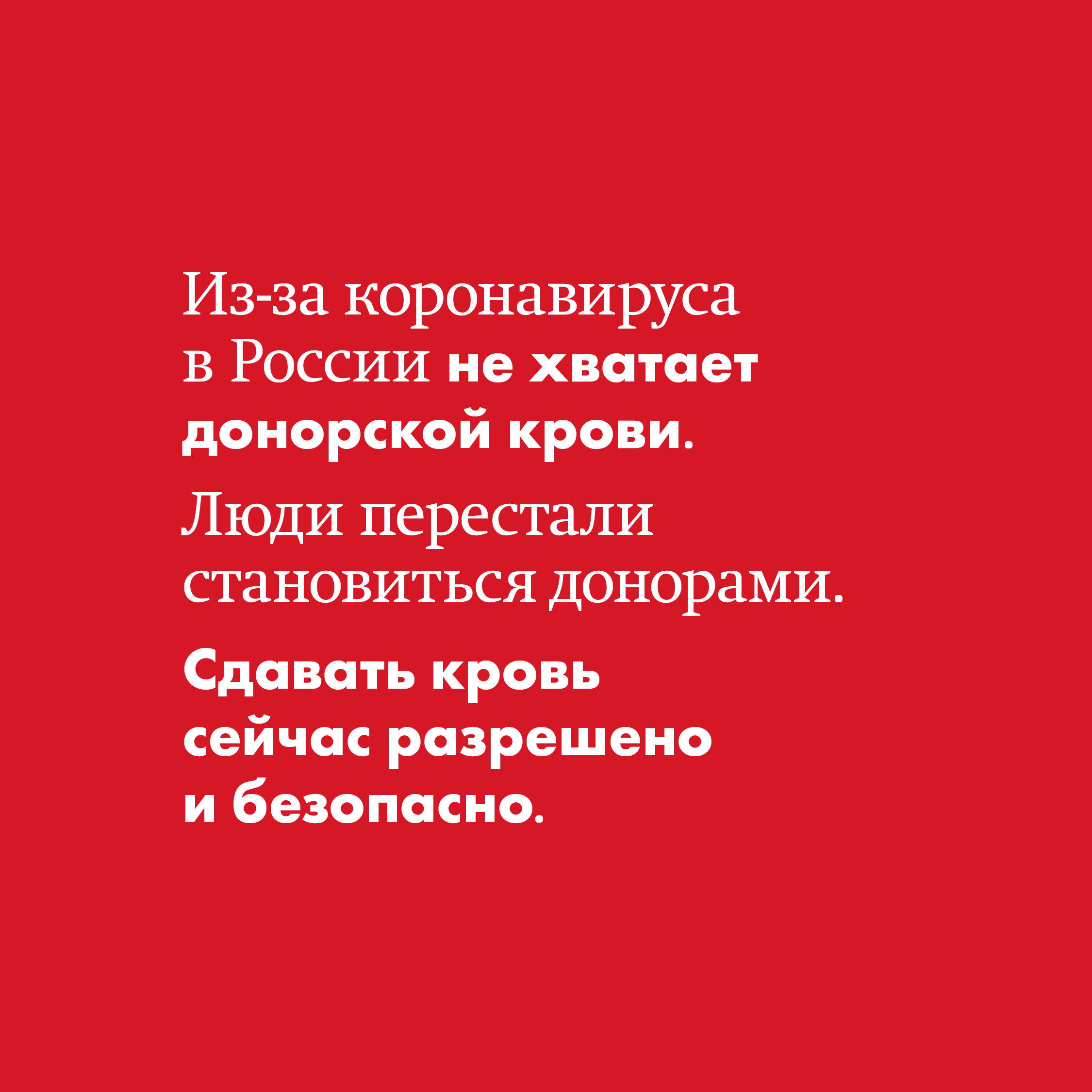 Донорская кровь нужна людям с самыми разными заболеваниями, а в условиях пандемии — особенно. Врачи говорят, что вызванные коронавирусом осложнения также могут потребовать срочного переливания крови. Поэтому доноры сегодня нужны как никогда.