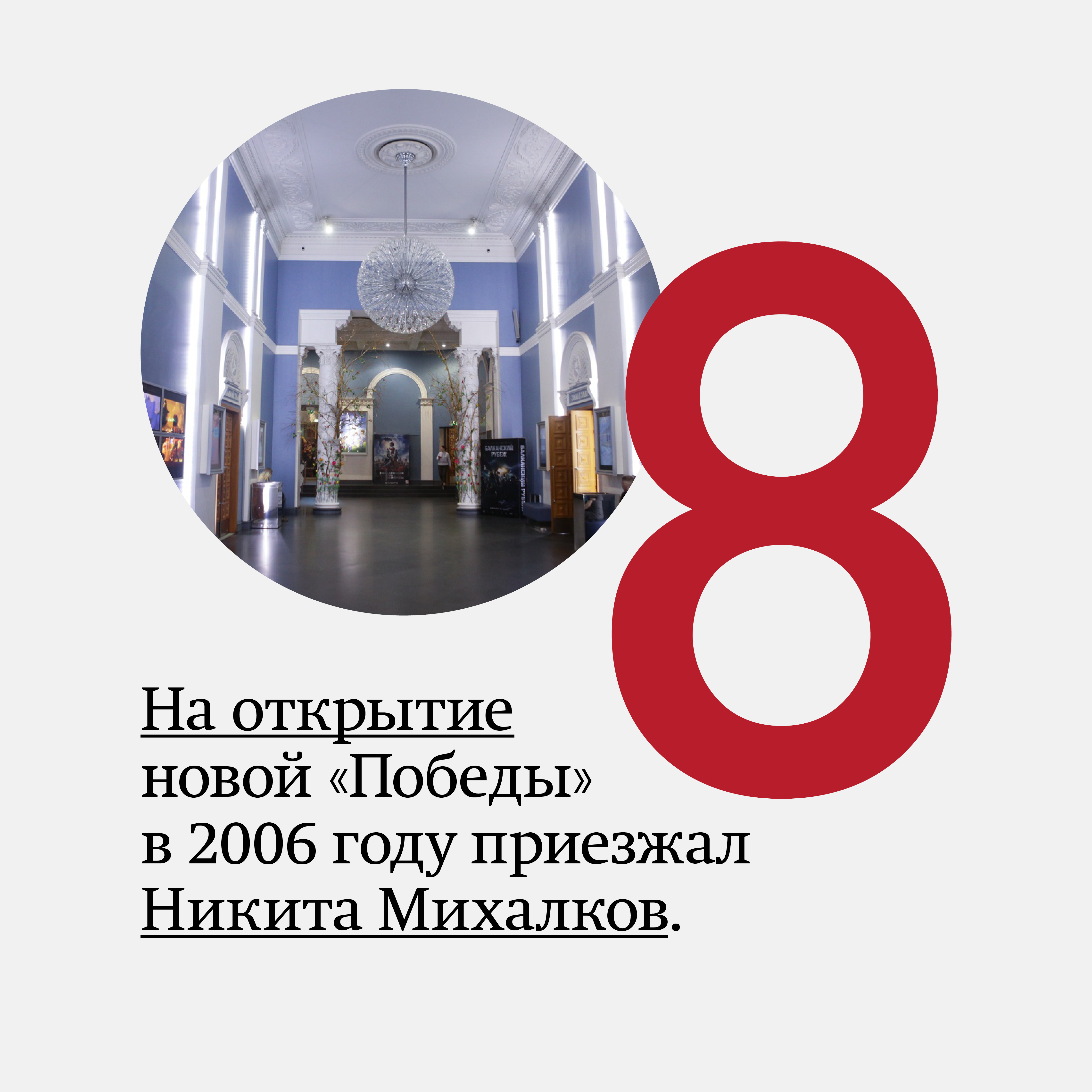 5 декабря 2006 года состоялось торжественное открытие отреставрированной «Победы». Посмотреть на пятизальный кинотеатр приехали Никита Михалков, Ольга Дроздова и Лариса Голубкина.