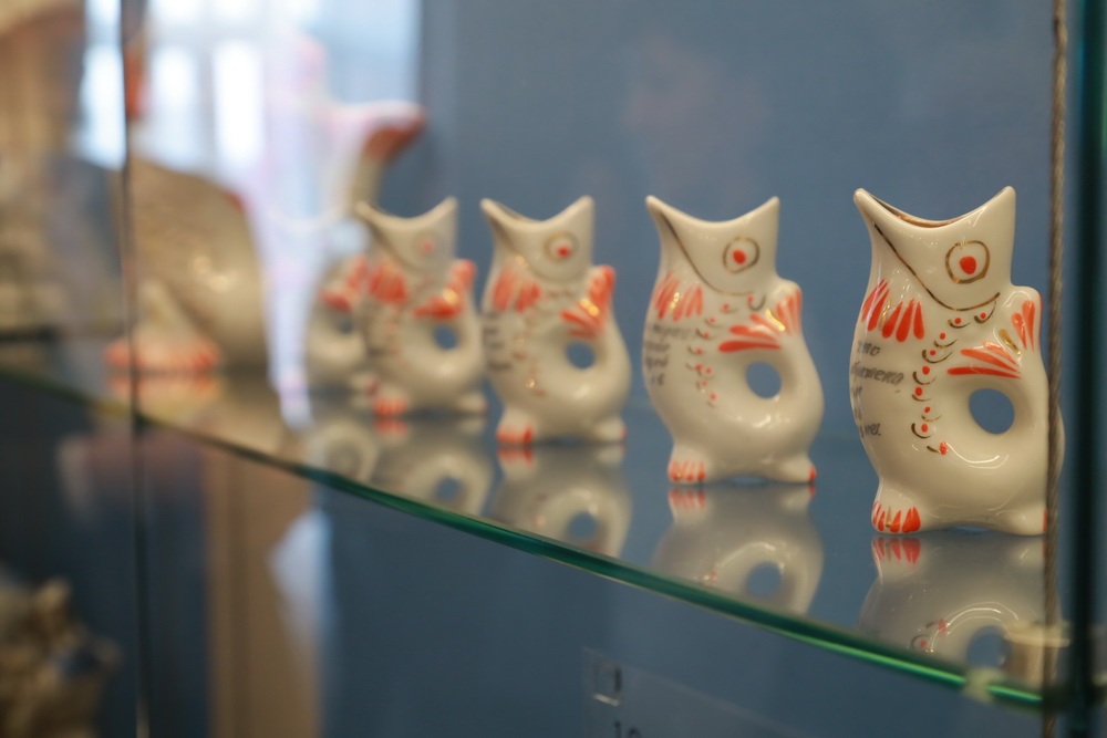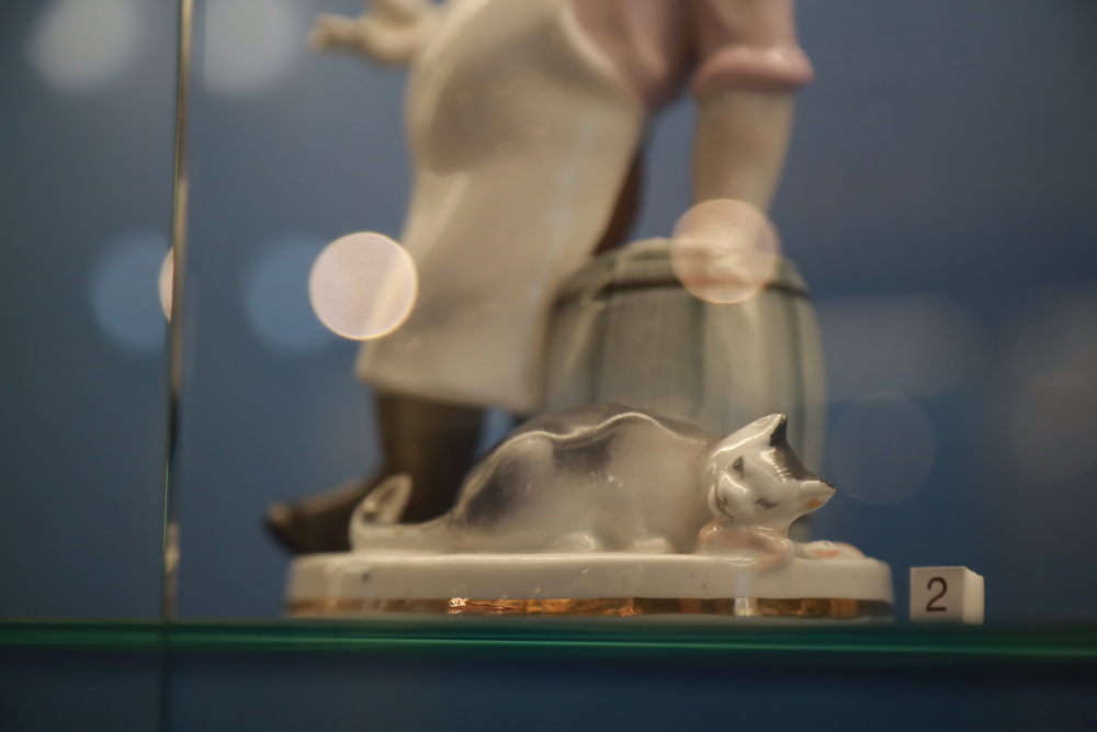 У первых посетителей новой выставки на лицах сразу появляются улыбки: многим хорошо знакомы экспонаты в витринах. Когда-то фарфоровые собачки, кошечки или рыбки были почти в каждой советской семье. Но это не просто экспозиция безделушек, напоминающих о недавнем прошлом. Для учёных даже мещанский атрибут может служить историческим источником.