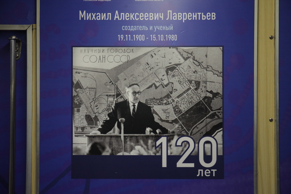 «Как говорил Лаврентьев: „Чем больше я рассуждал и размышлял с коллегами о Сибири, тем заманчивее казалась идея именно там создать высокую концентрацию научных сил“», — произносит ведущий. В метро рассказывают истории о создателе Академгородка — Михаиле Лаврентьеве. К его юбилею в подземке открыли фотовыставку.