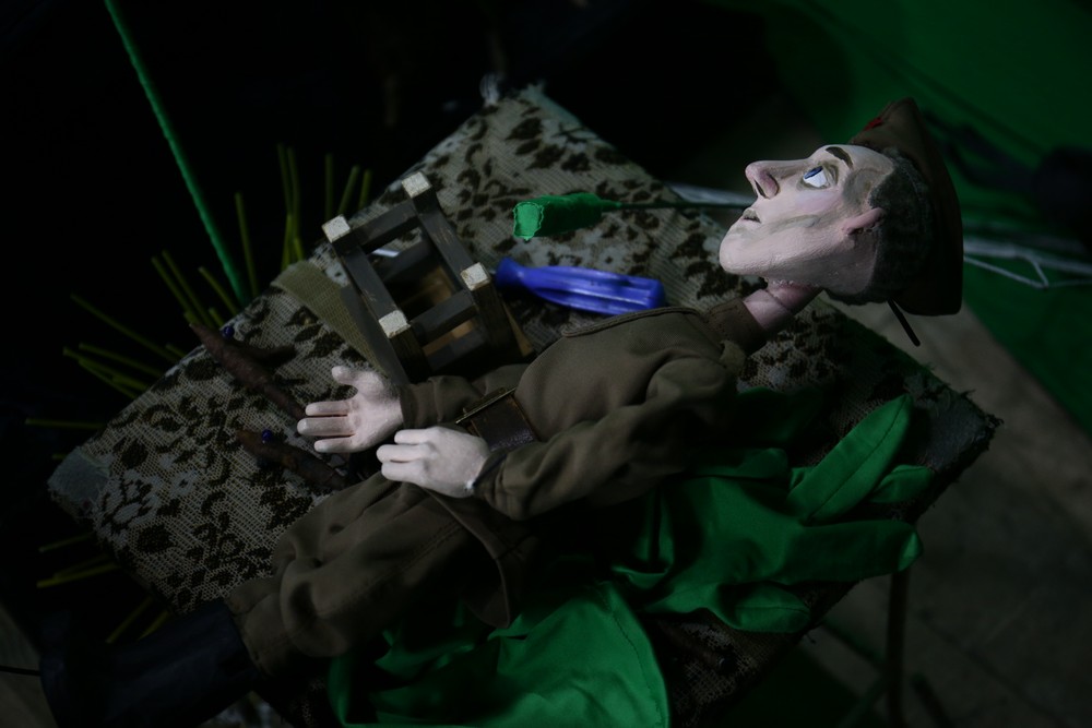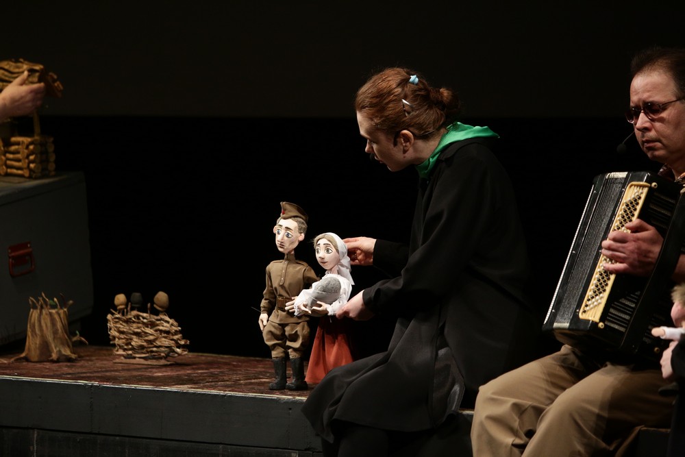 Актёры-кукловоды спрятались за сцену в спектакле о войне в Новосибирске