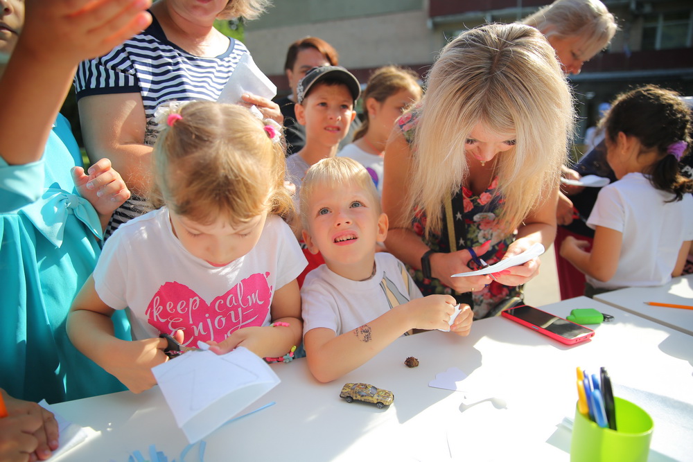 Разумеется, мы говорим с ними на том языке, который им понятен, с помощью игровых методик, символов и творчества. Это то, что в природе ребёнка. Дети должны творить, чтобы стать творческими взрослыми людьми. Ребёнок выражает своё состояние через эмоции, вербально или тактильно. Если что-то зацепило, он скажет, что-то сделает или обнимет. У нас две малышки закрыли ушки и начали плакать — так их зацепила история про ангелов Донбасса. Это чувство причастности к событию, выраженное языком ребёнка.