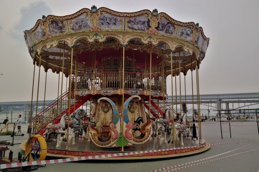 В Новосибирске появился островок Парижа — музыкальную карусель в виде красочного шатра с весёлыми лошадками и светящимися гирляндами установили на Михайловской набережной.