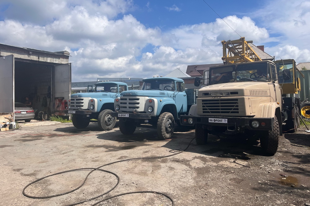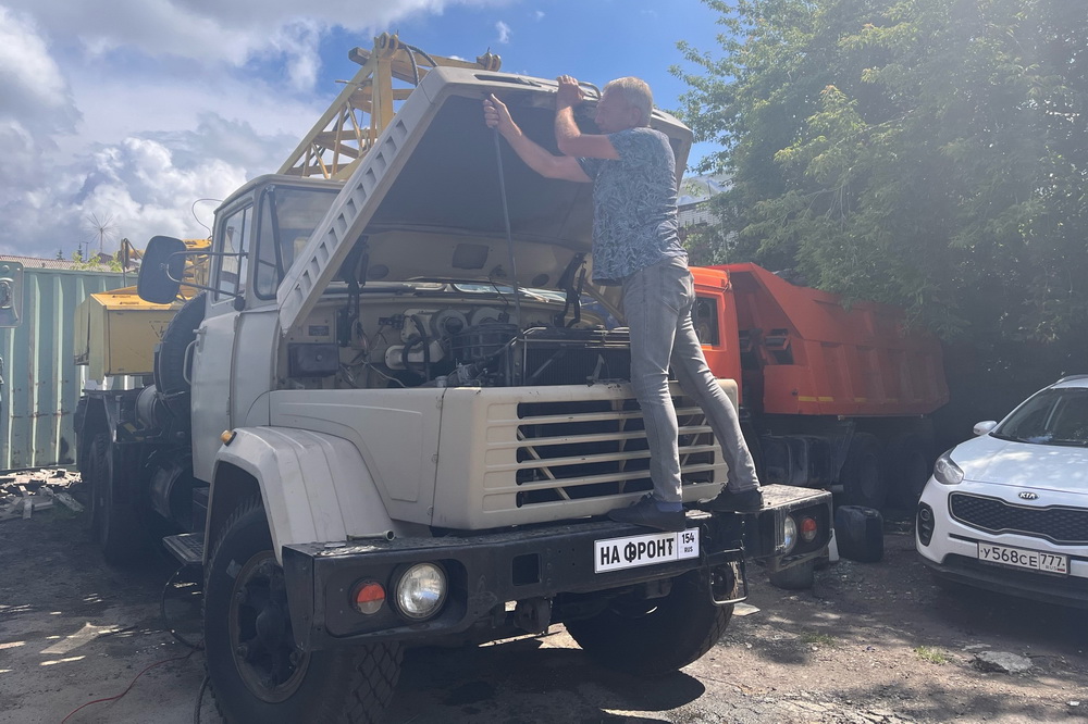 «Машины новые, машины с консервации. Кран сюда приехал в Новосибирск из Кулунды — 400 километров своим ходом. И на спидометре у него — 400 километров. Всё, что можно смазать, смазали, но есть резинки, трубки и всё остальное, которое со временем начинает трескаться, бежать», — рассказал автор благотворительного проекта «УАЗ на Донбасс» Сергей Шилов.
