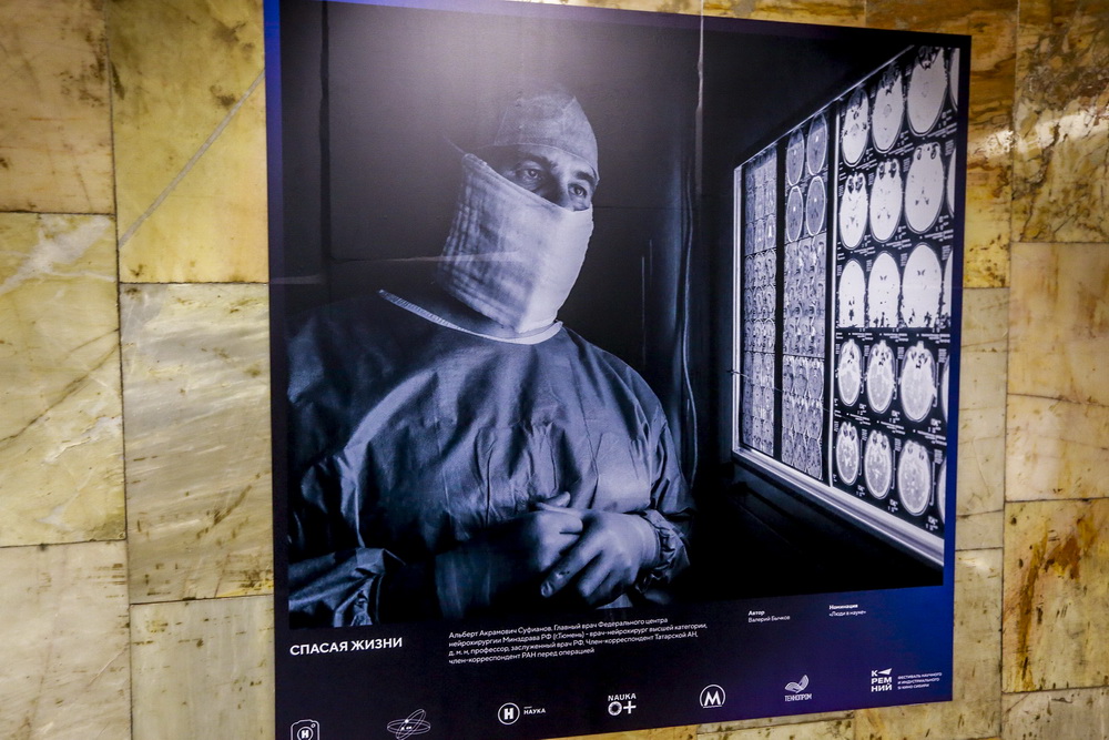Посетители могут увидеть хирургов во время сложной операции, учёных на пороге новых открытий, фото во время экспериментов и даже космические пейзажи.