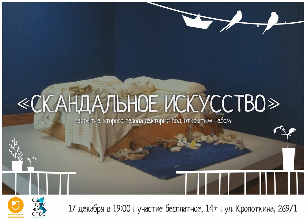 Приходите на лекцию «Скандальное искусство» 17 декабря. Подискутируйте о том, являются ли раскрученные работы предметом искусства, рассмотрите самые абсурдные способы самовыражения художников и попытайтесь разобраться в том, куда движется культура сейчас.