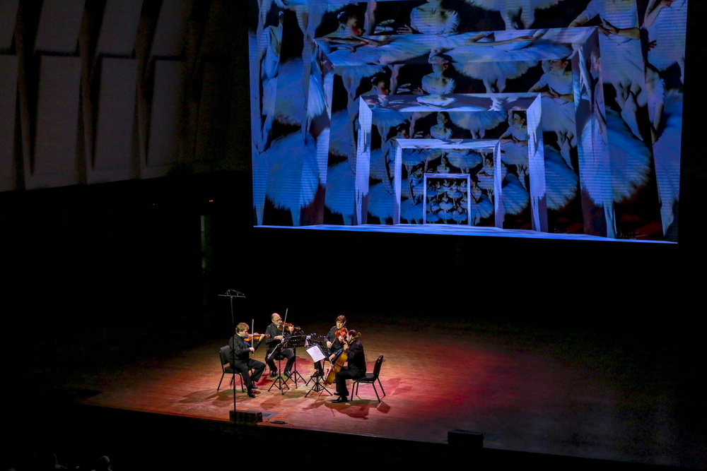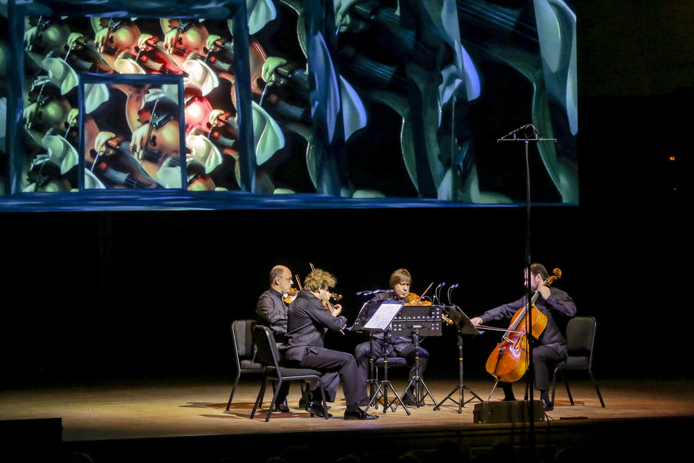 В Новосибирске прославленный квартет представил уникальную программу. Классические произведения Гайдна, Чайковского и Дебюсси дополнили мультимедийной подачей. В фойе концертного зала имени Каца открылась выставка «Улицы филармонии». Экспозиция посвящена тому, как художники видят музыку.