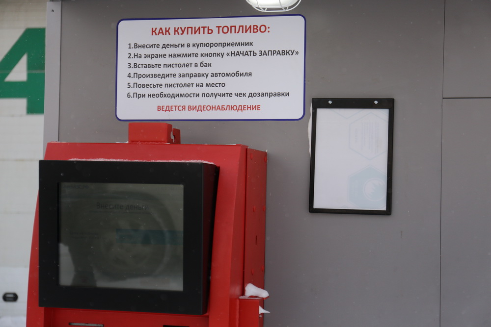 Вставьте деньги в купюроприёмник и нажмите кнопку «Начать заправку». Дальше можно брать пистолет и наполнять бак — по демократичной цене. АИ-95 гораздо дешевле, чем на любой большой официальной заправке. В последнее время такие автоматы стали популярными.