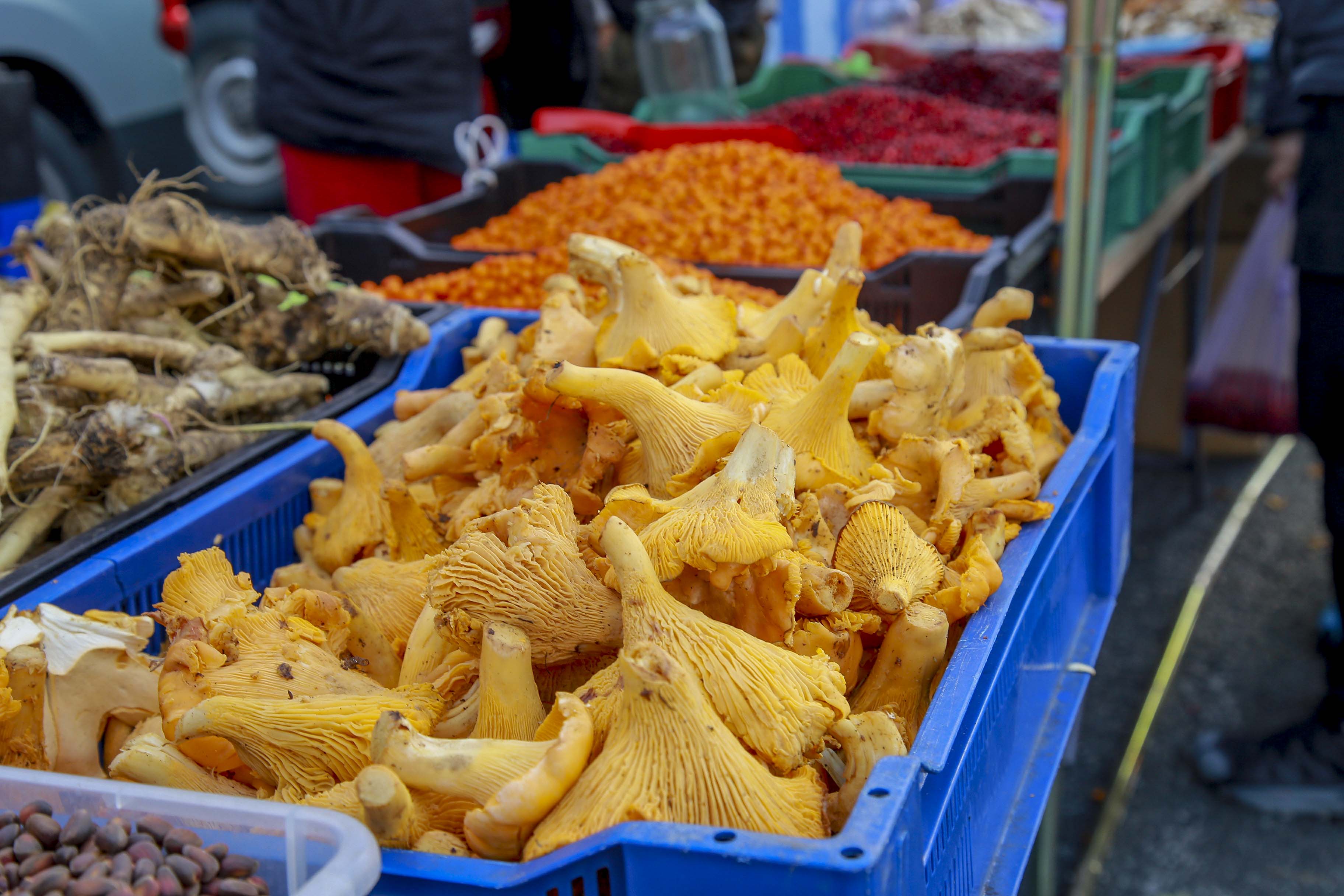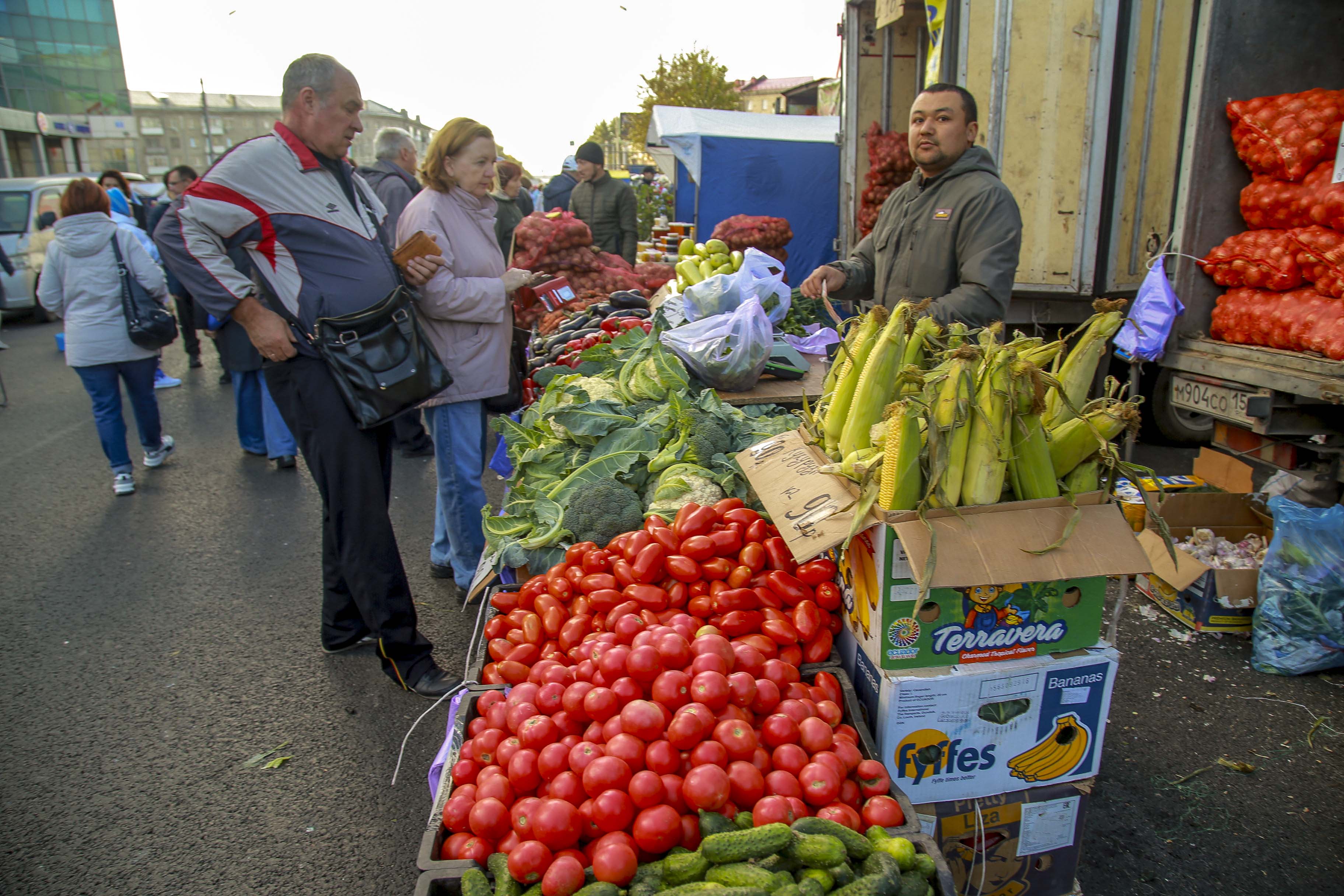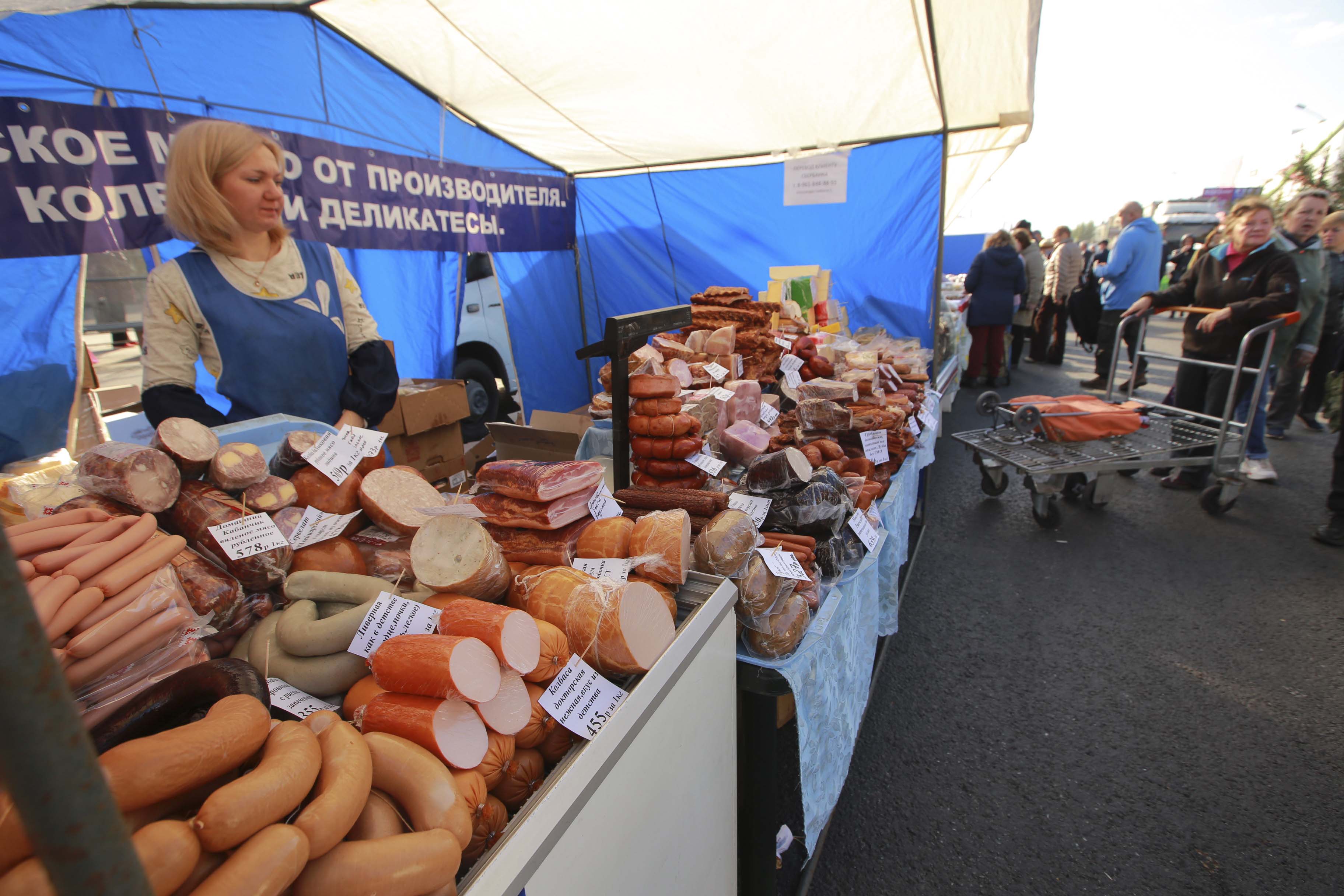 Горы сыра и колбас разных сортов, грибы, ягоды и домашние маринады. И, конечно, свежий урожай. Редкие сорта помидоров, образцы которых нельзя трогать руками, картофель и морковь по цене ниже рыночных. Покупатели здесь появились уже с утра.