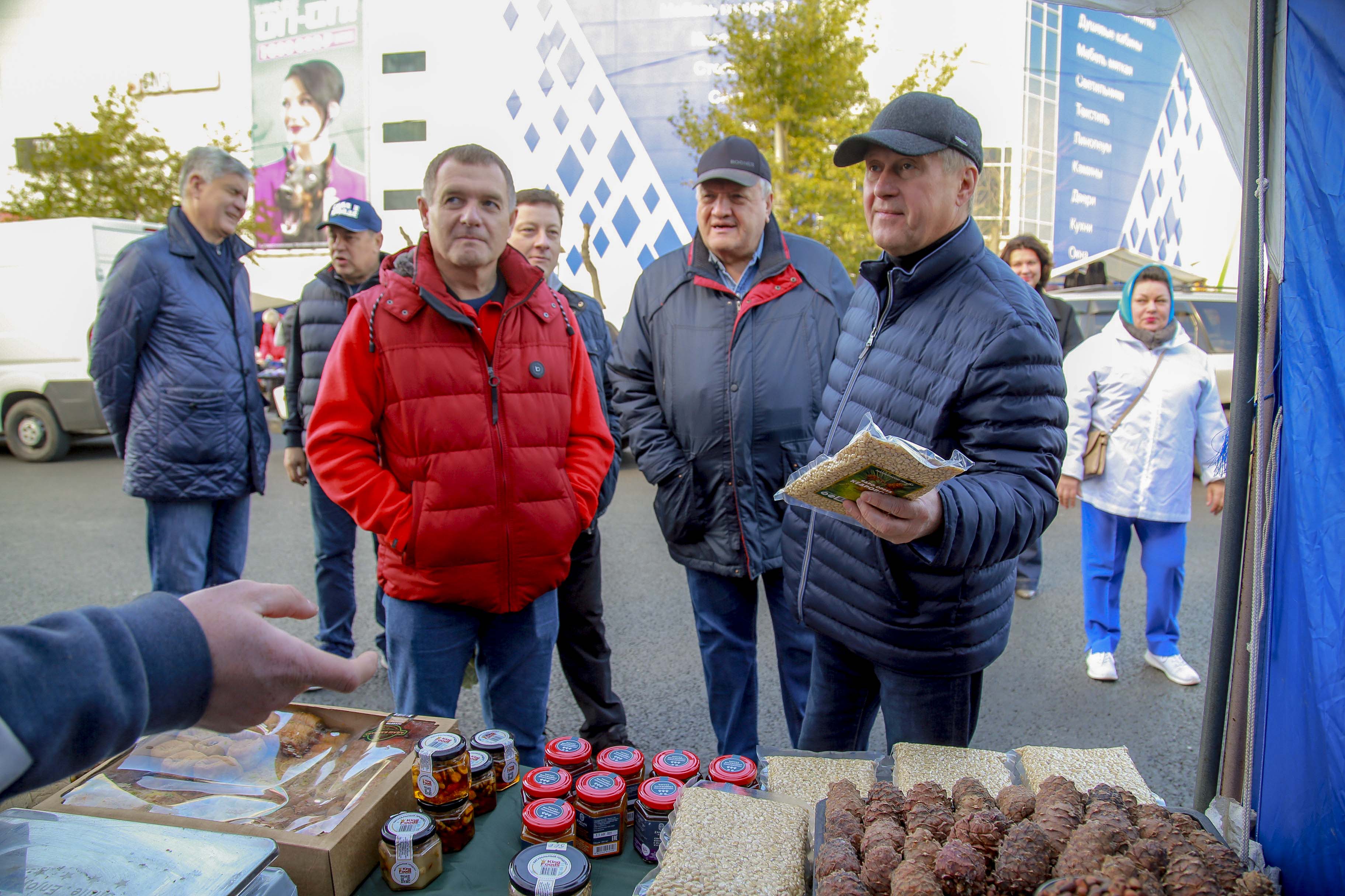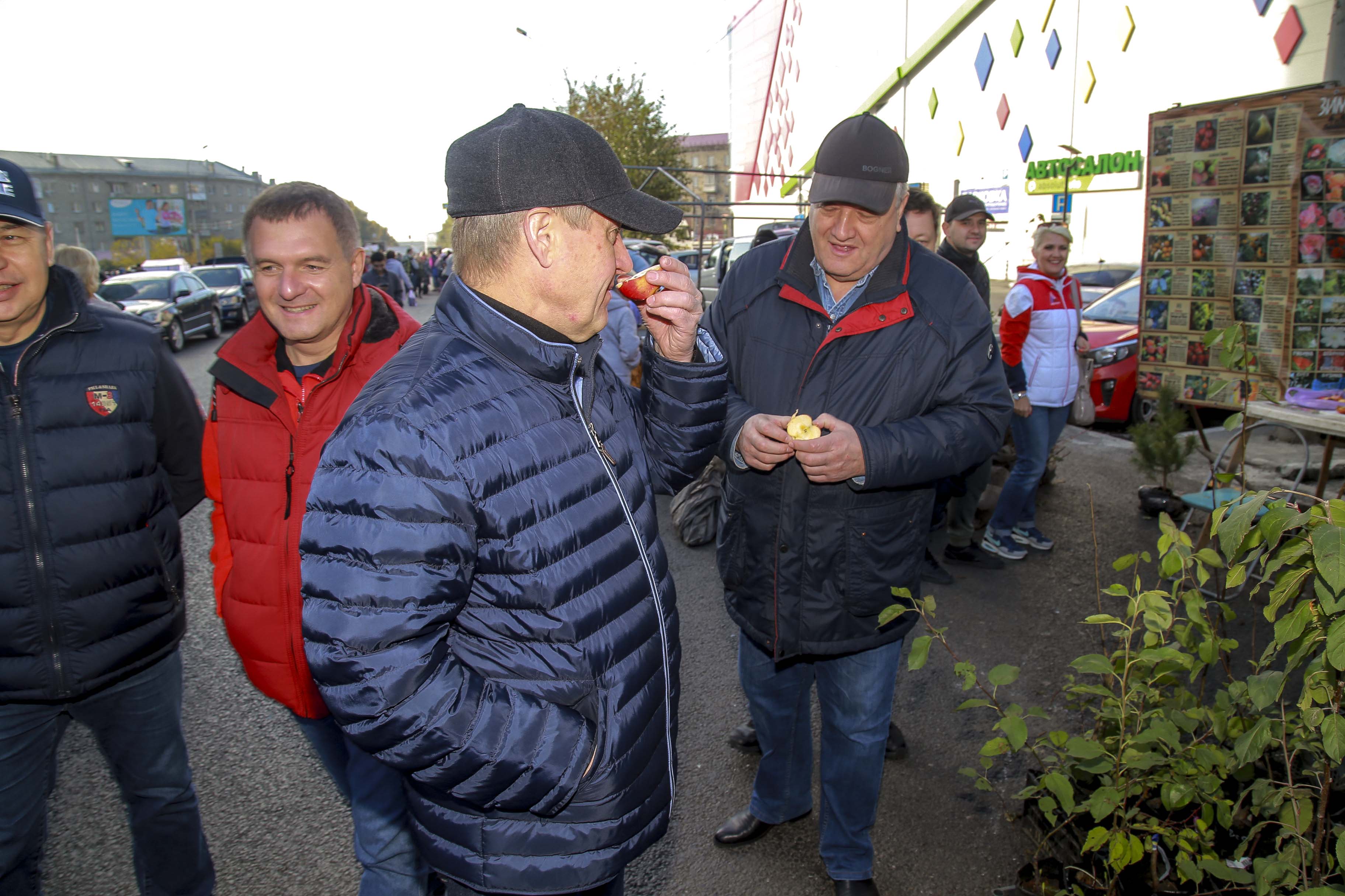 Ярмарку посетил и мэр Новосибирска Анатолий Локоть. Глава города прошёл по рядам и попробовал сибирские яблочки.