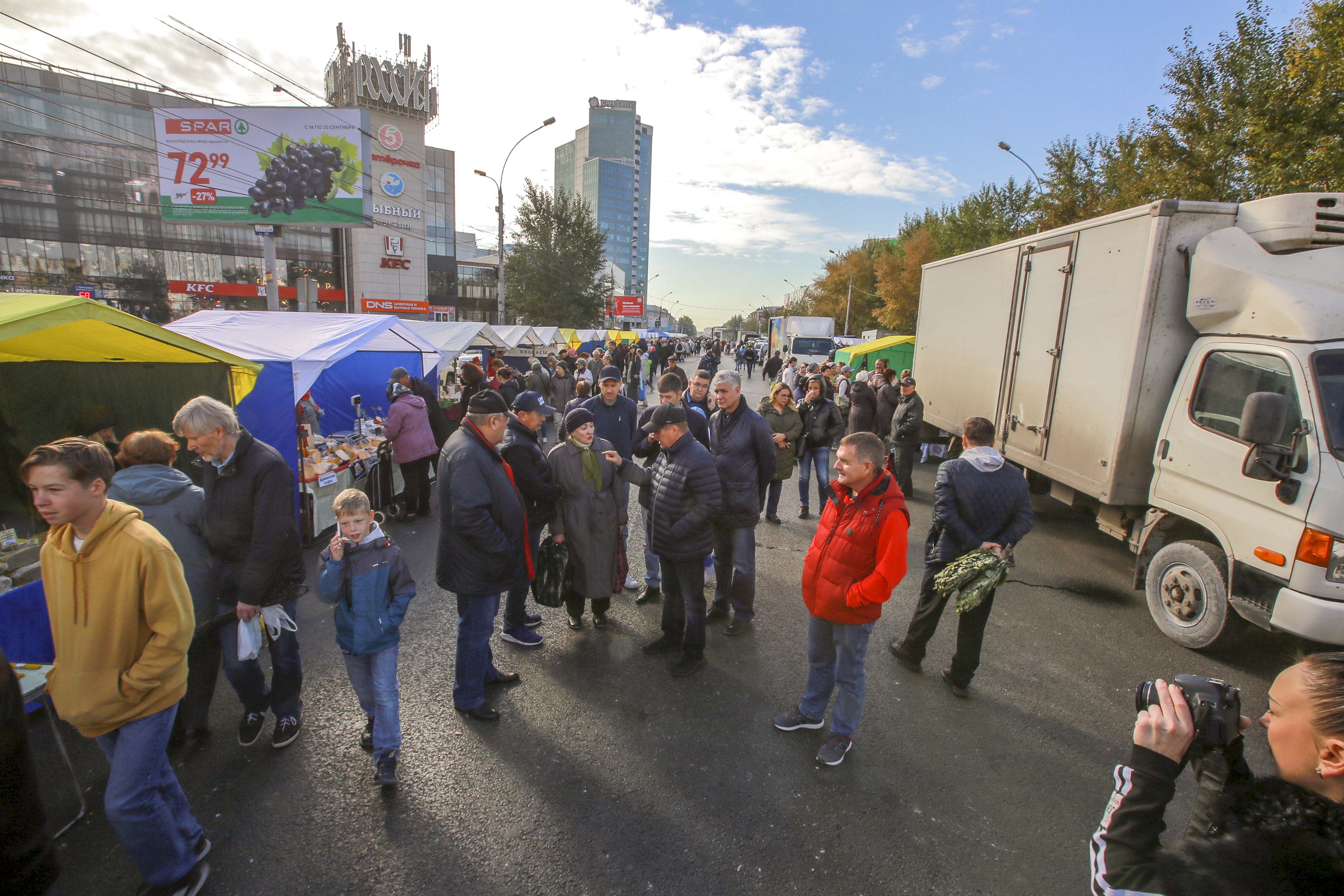 Жители левобережья ещё могут успеть на большую сельхозярмарку, которую открыли в субботу, 17 сентября, возле ГУМа на площади Маркса. Палатки будут работать до 16:00.