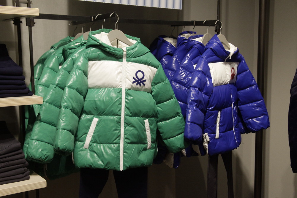 В магазине United Colors of Benetton нашлись свитера из пряжи, сделанной из кашемира, вискозы и полиамида. Они удивительно лёгкие, тёплые и приятные для кожи. В этом же магазине к зиме продают пуховики для взрослых из ламинированной ткани ярких расцветок, а для детей — пуховики, сделанные из переработанных пластиковых бутылок.