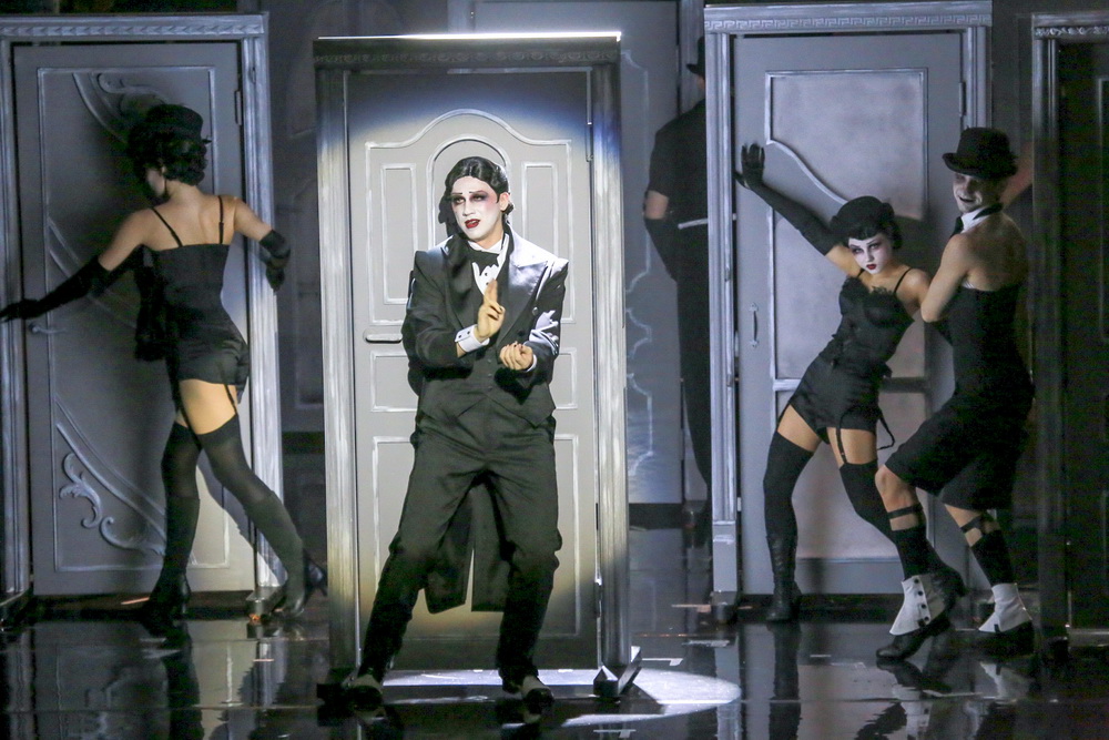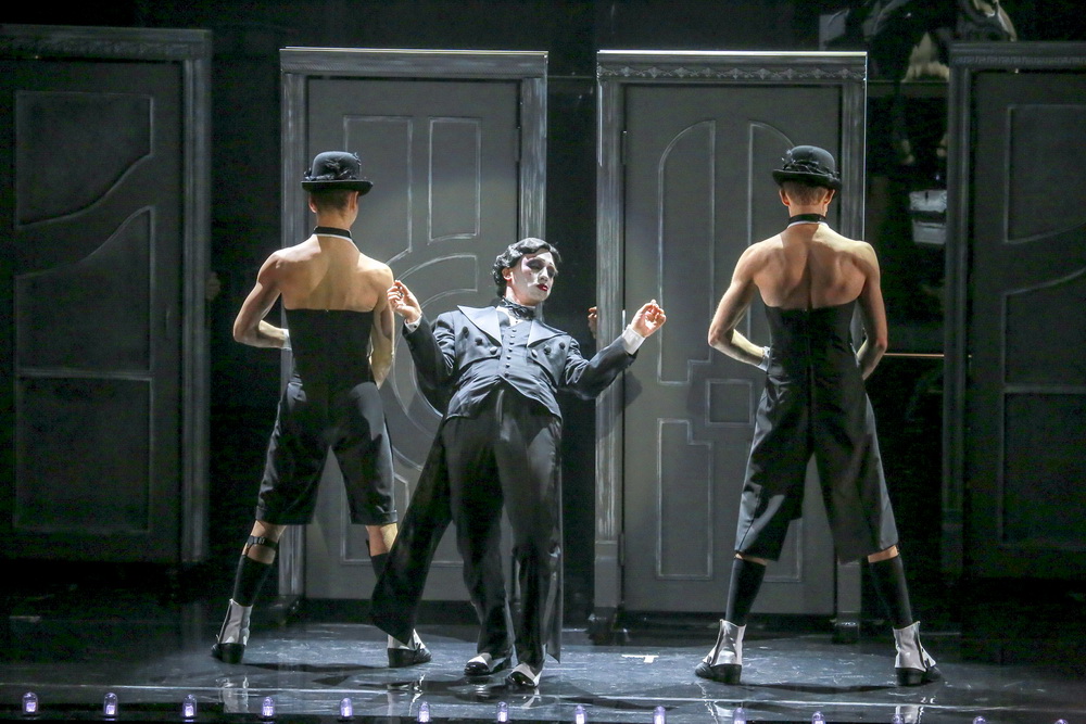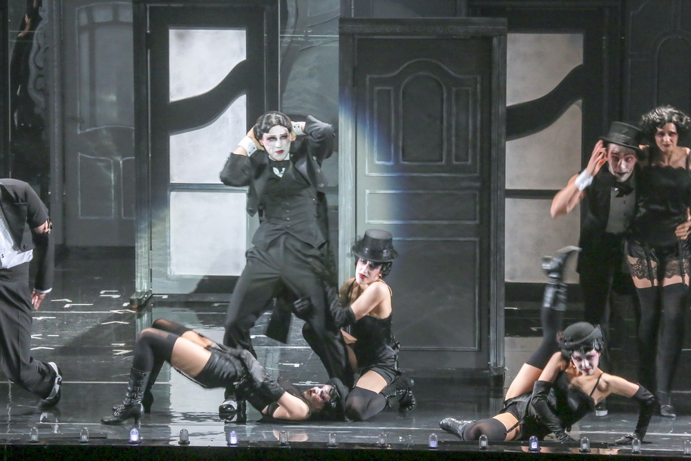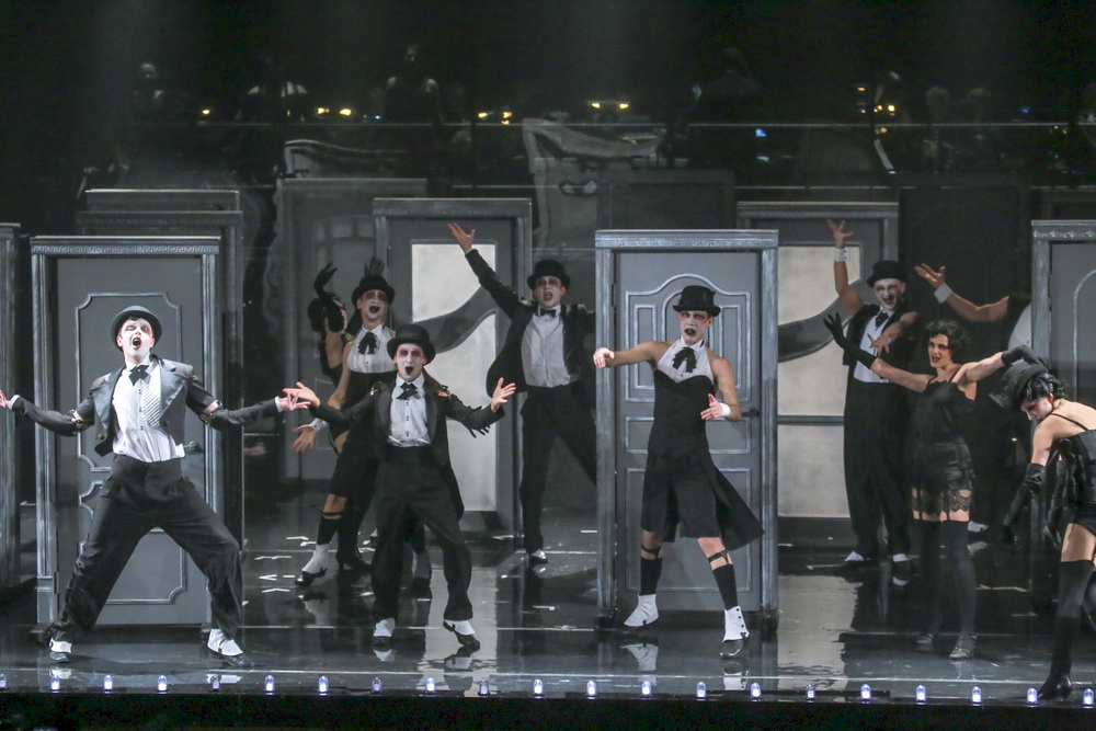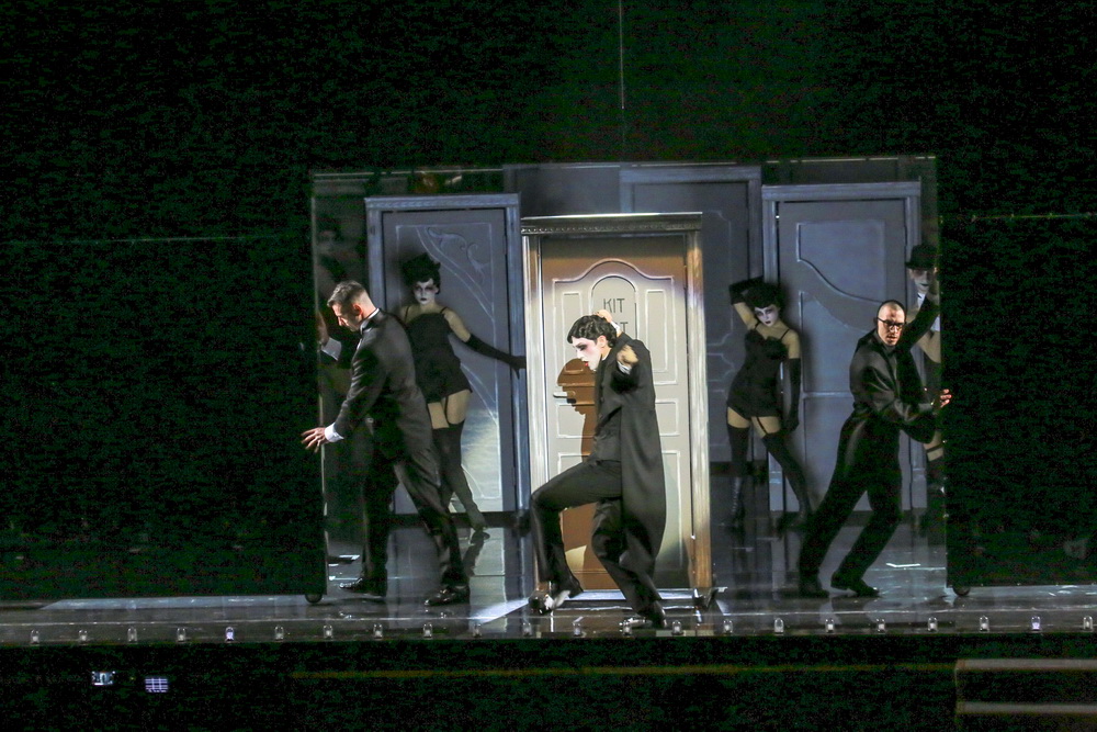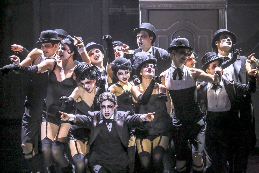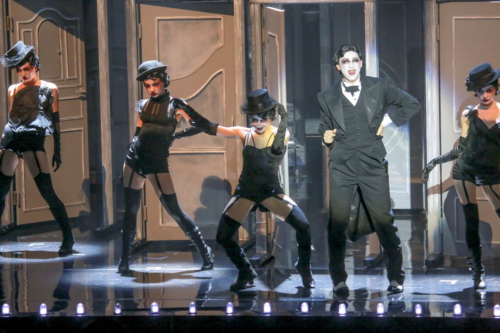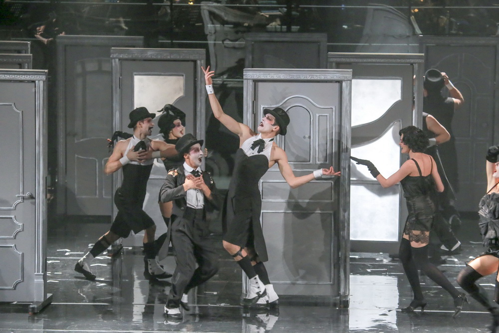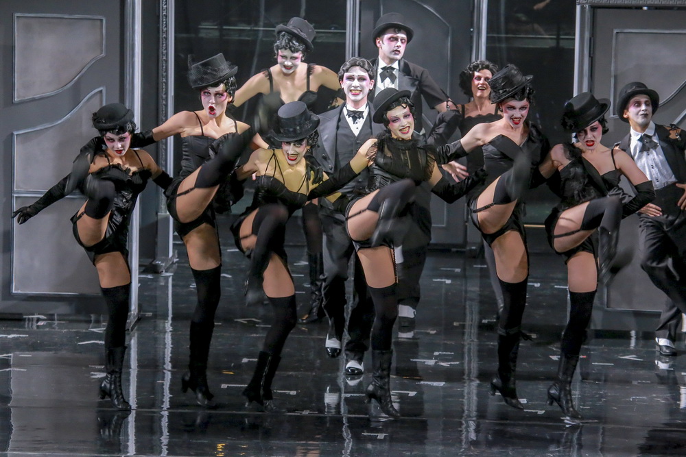 Танцы. Кабаре во всей красе показывают актёры театра «Глобус». Классический мюзикл с обилием страз на костюмах, отточенная хореография — именно таким хотел показать спектакль в Новосибирске режиссёр Алексей Франдетти.