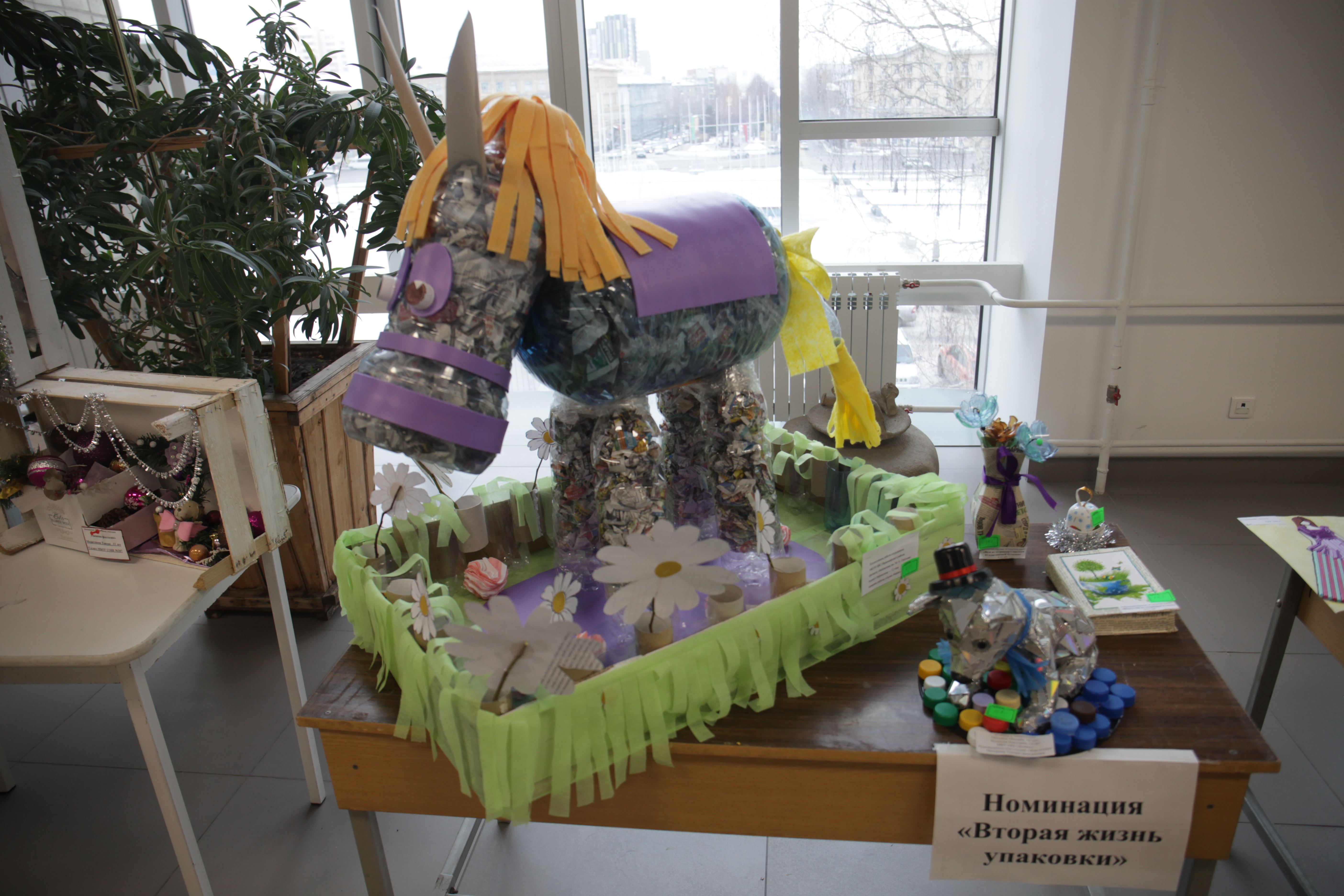 Цветы из крышечек, дом из упаковки для молока и корабль из картона: в ГПНТБ наградили авторов лучших поделок из вторсырья. В конкурсе «Вторая жизнь упаковки» приняли участие около 400 человек.