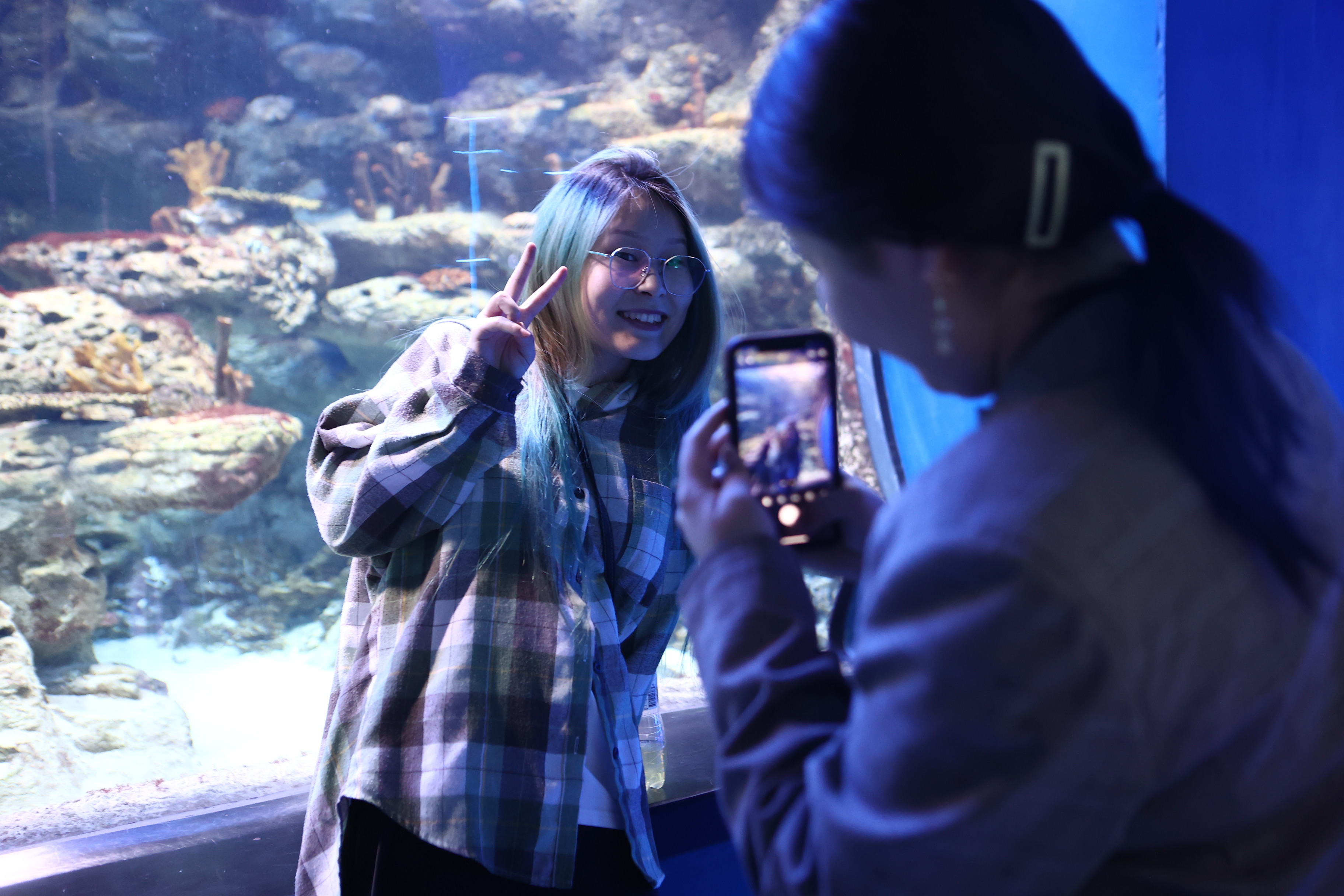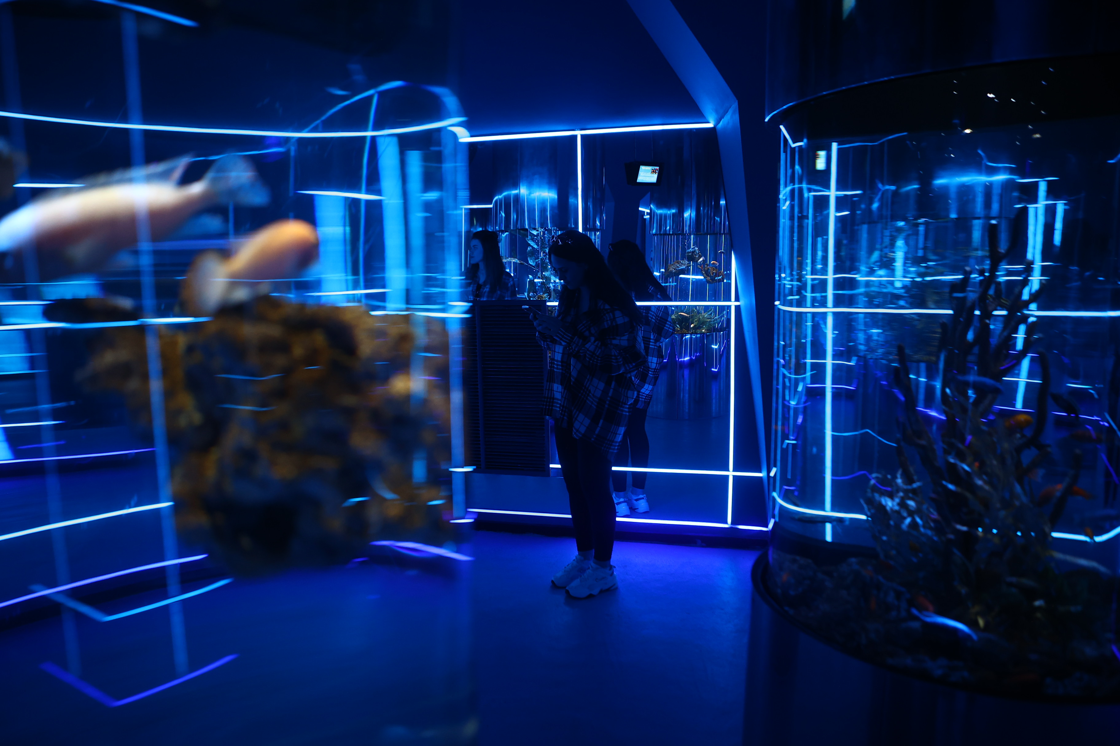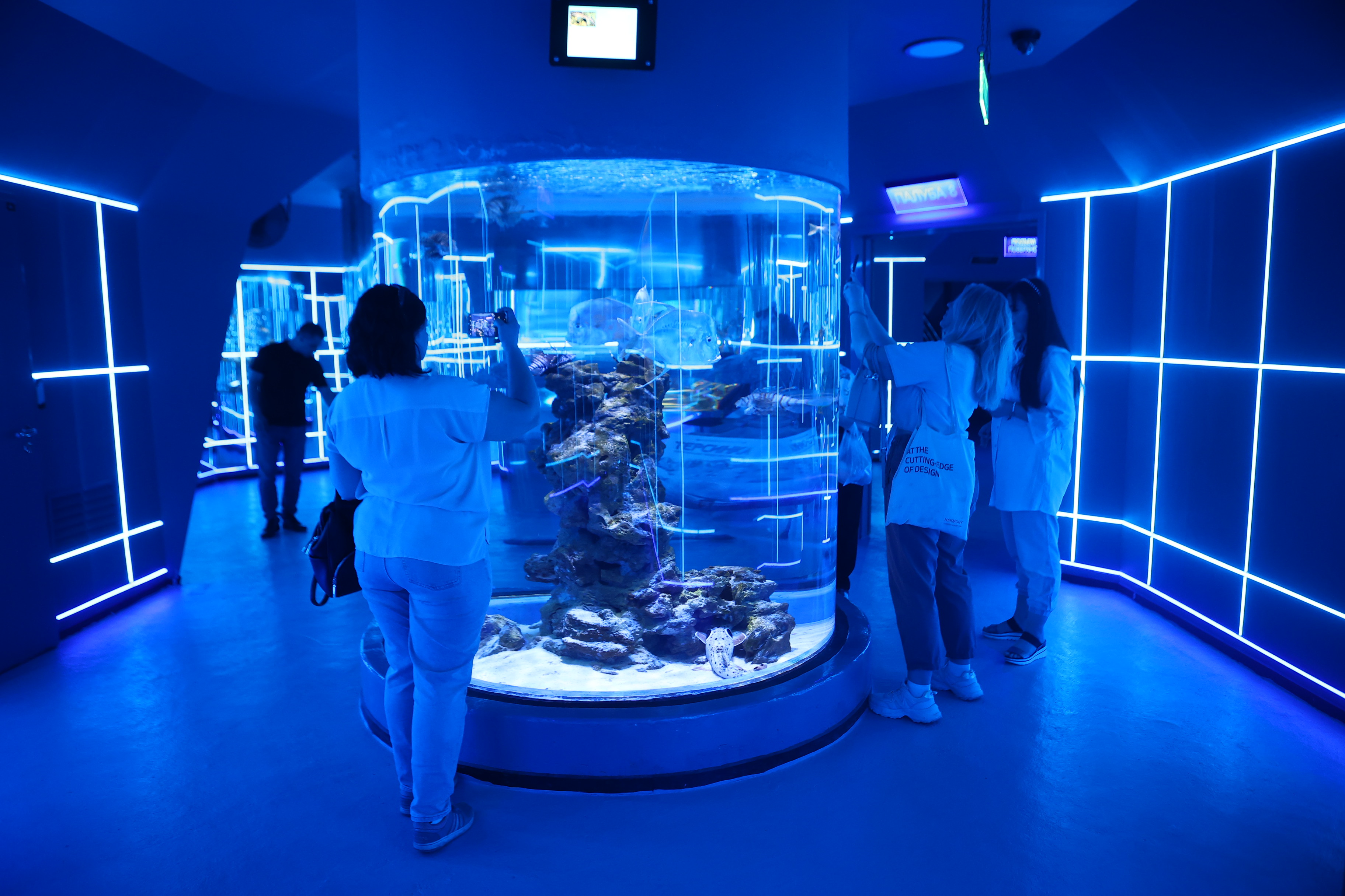 Океанариум в честь «Ночи музеев» продлил работу на два часа. Билеты продавали вполовину дешевле обычных. Гостей удивляли зрелищным ужином маленьких акул. В меню — обожаемое ими лакомство: морской коктейль.