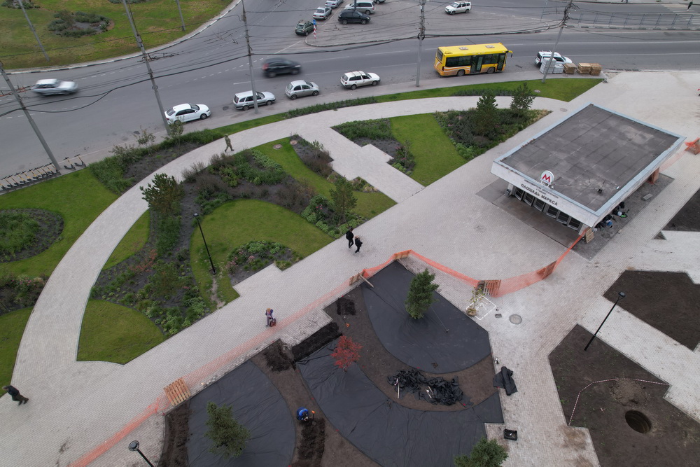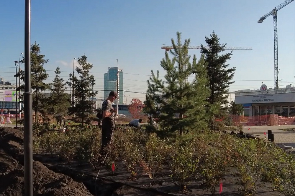 Сквер около строящейся гостиницы «Турист» на площади Маркса доделают за ближайшие три недели. Об этом рассказал генподрядчик — сейчас там вовсю кипит работа: одновременно выкладывают оставшуюся плитку и высаживают растения. Никаких хилых веточек — только крупномеры. А ещё — много кустарника, полевые многолетние цветы, густой газон. И всё это — в центре площади, у которой долгие годы была дурная репутация. Ещё бы, сплошные долгострои возрастом до полувека, уличные торговцы, пё...