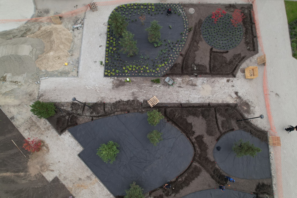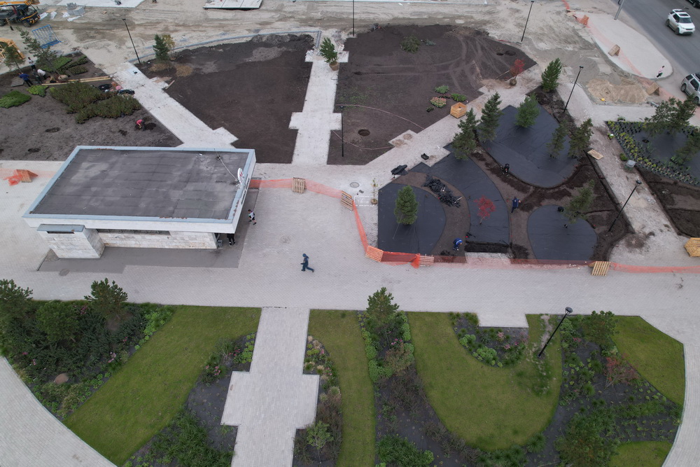 — На данный момент благоустройство прилегающей территории близится к завершению. Активно ведётся озеленение сквера. Данный сквер построен по поручению мэра и через три недели будет открыт для жителей города.