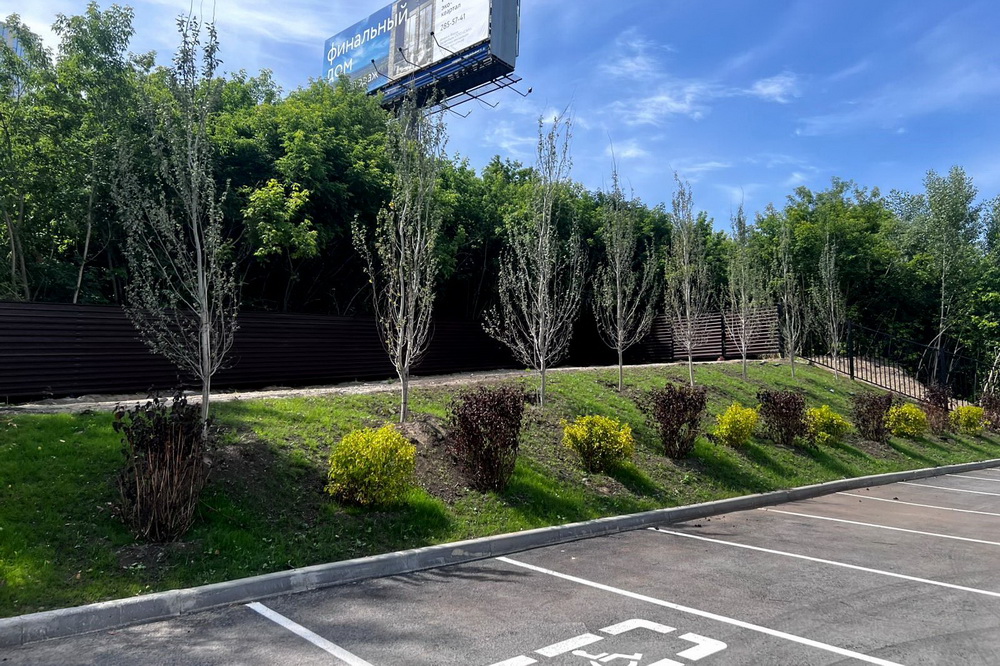 Территорию заасфальтировали. На стыке тротуаров с проезжей частью предусмотрели пандусы.