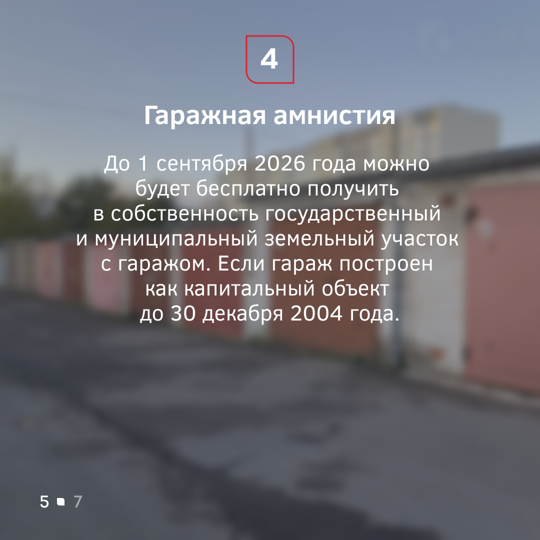 Изменения коснутся и владельцев гаражей. С сегодняшнего дня в силу вступил закон о гаражной амнистии. Она для тех, у кого капитальные боксы. Можно в упрощённом порядке зарегистрировать право собственности на объект недвижимости и на участок земли под ним.