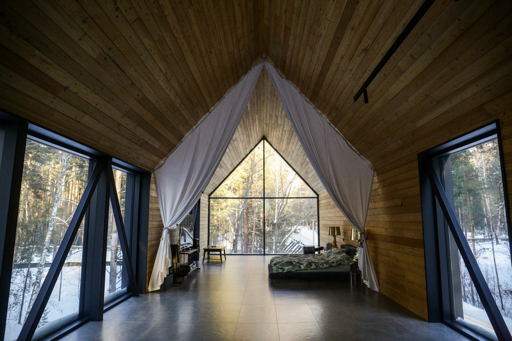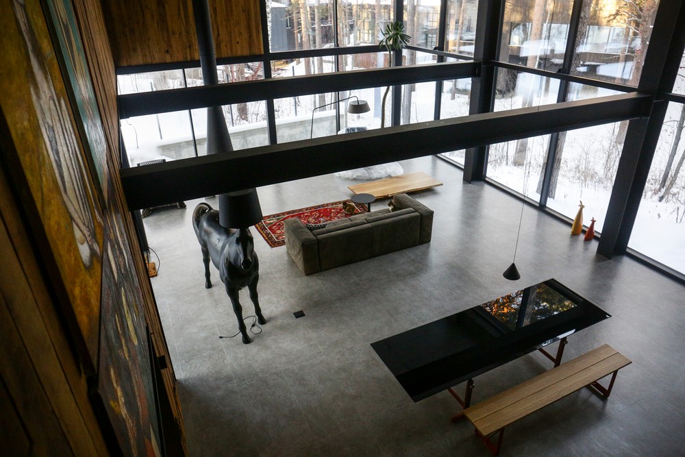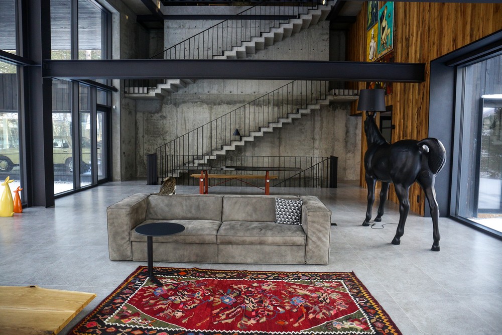 Строительство коттеджа на опорах обошлось в серьёзную сумму. Создавали его из материалов, которые можно купить в Новосибирске. Внутри — коллекционная итальянская мебель. Аксессуары тоже не из масс-маркета.