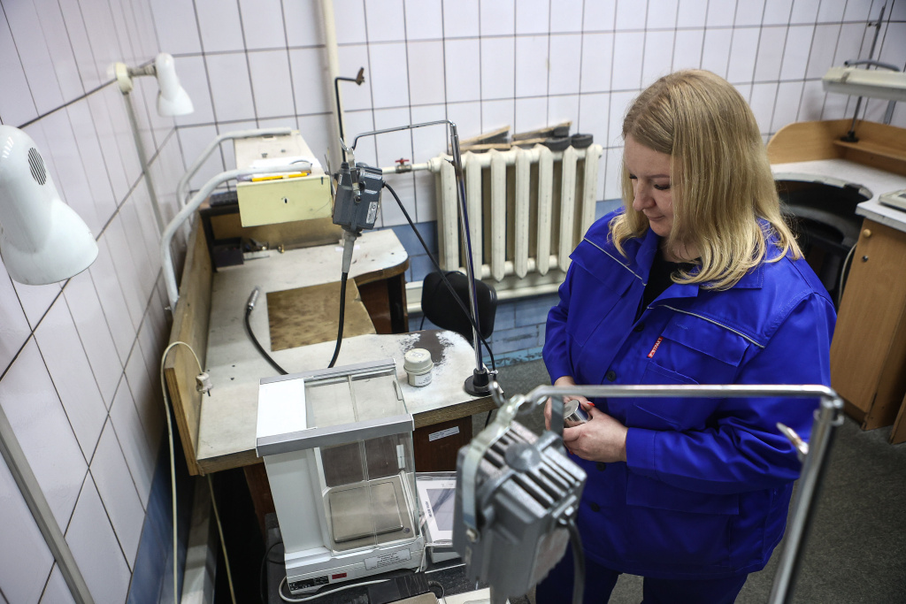 Ведь, как и скульптор, аппаратчик создаёт из заготовки самое настоящее произведение искусства. В моём арсенале имеется специальный инструмент для зачистки — маленькие молоточки и напильнички. Я работаю за специализированным столом, где все спилы от слитков попадают в специальный выдвижной поддон, а затем собираются и направляются обратно в производство», — рассказывает Мария.