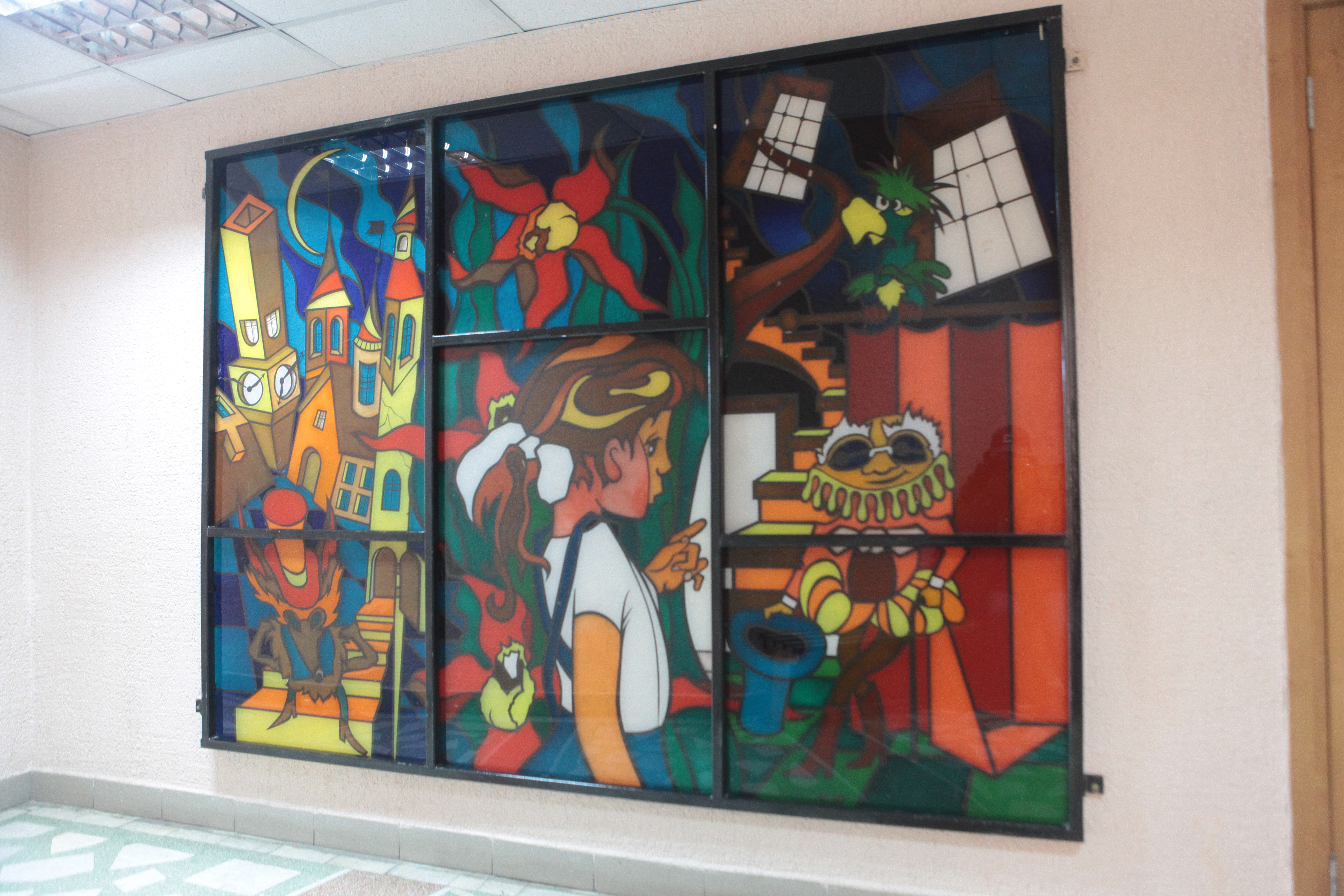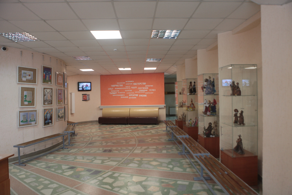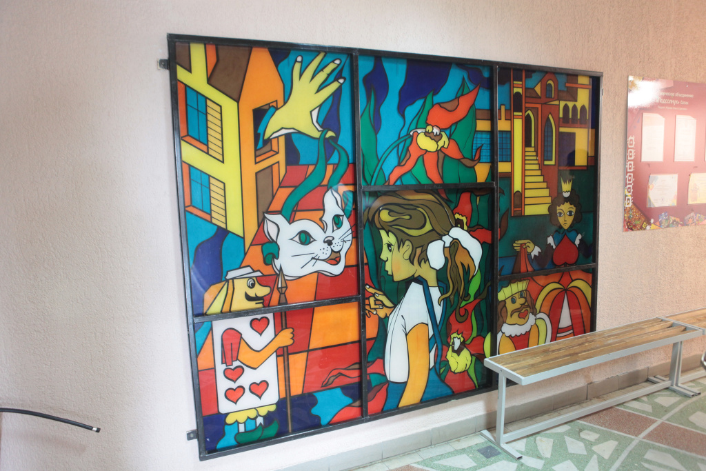 Ещё с советских времён на втором этаже здания остались два витража, посвящённых Алисе и персонажам сказок Андерсена. Из сохранившихся артефактов эпохи СССР сотрудники отметили также большой стенной шкаф в кабинете изобразительных искусств, перила лестницы и мраморную отделку.