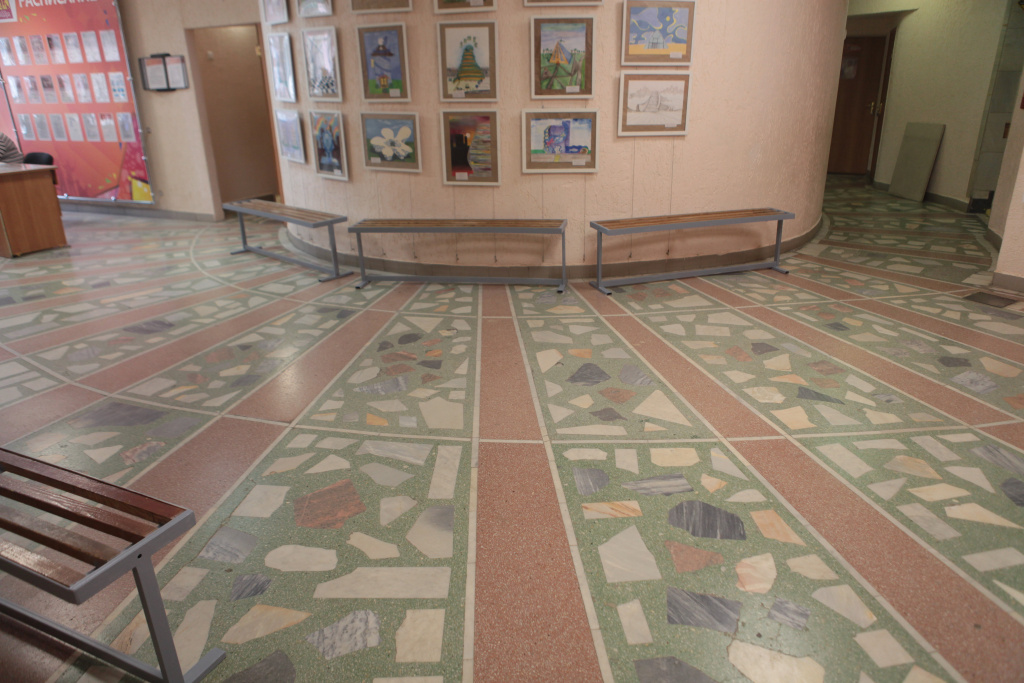 Рисунок пола в ДДТ имеет радиальную раскладку. Для него разрабатывали специальный проект.