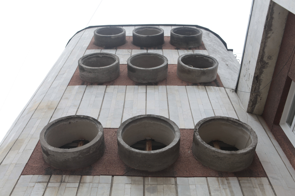 Функционал башни с круглыми окнами не до конца понятен. Говорят, в ней тоже есть лестница, по которой можно забраться наверх. Но оба подъёма предусмотрительно закрыли на замок.