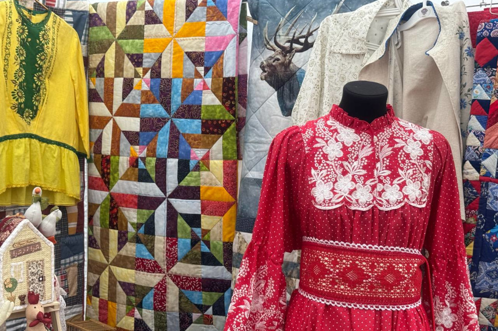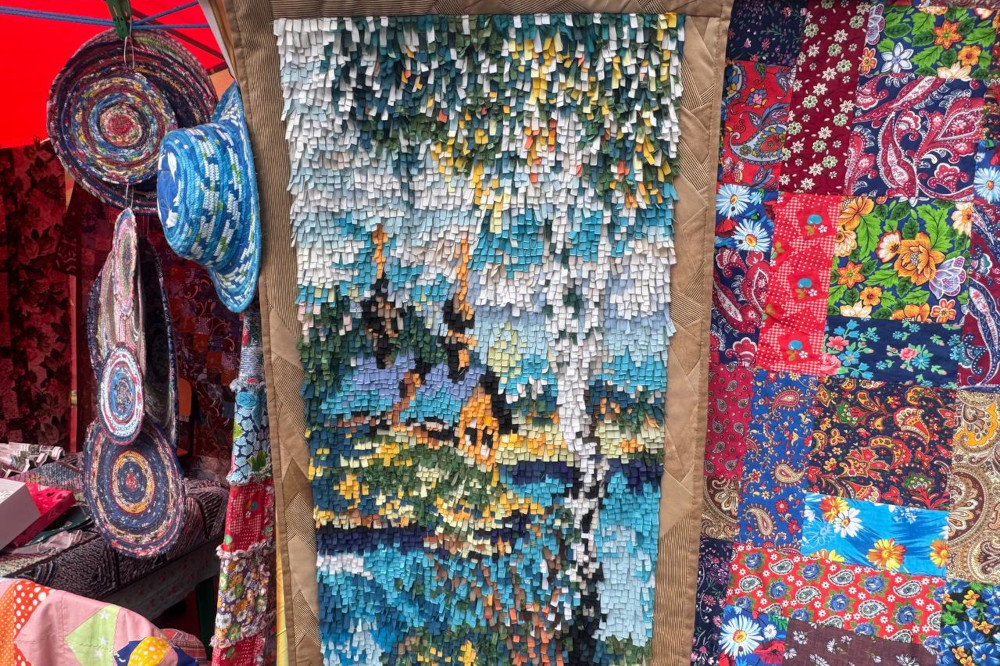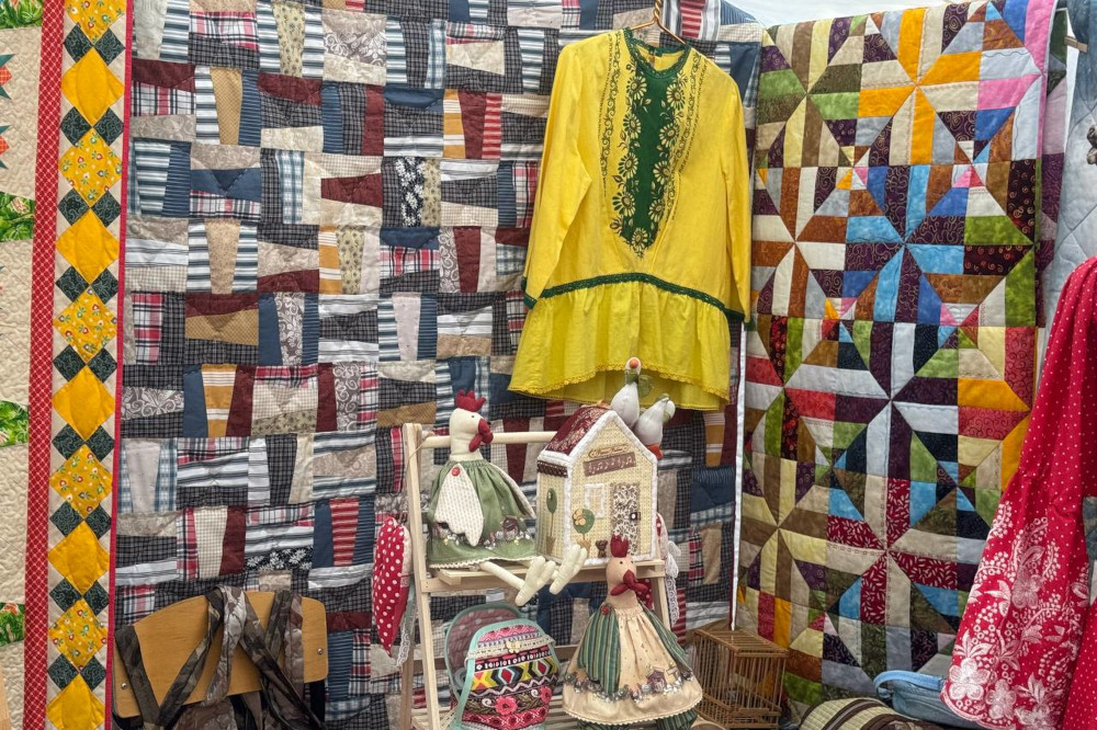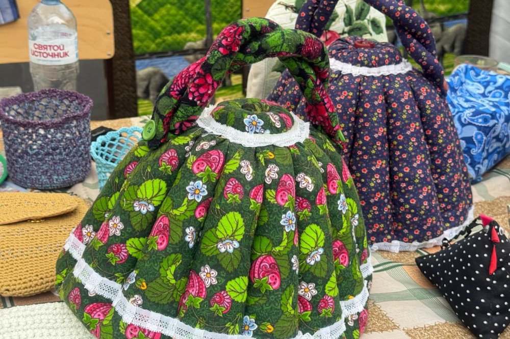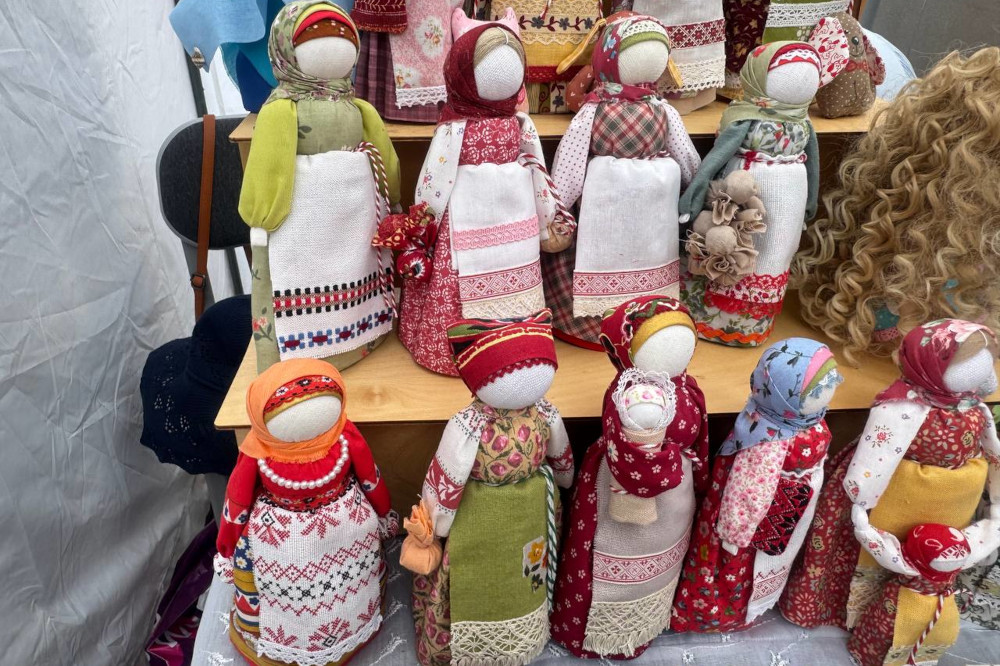 На улице Ильича развернули палатки с шедеврами рукоделия — домашним текстилем, одеждой, аксессуарами, картинами и тряпичными куклами с международного фестиваля «Душа России». Одна из работ — «Лесная сказка» — заняла первое место на конкурсе в Великобритании.