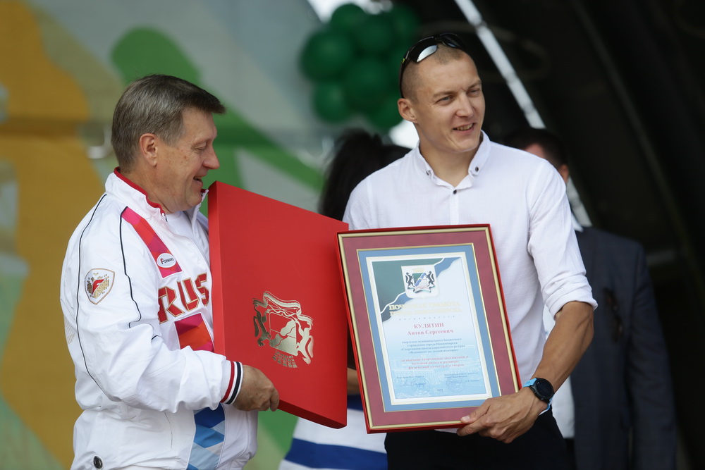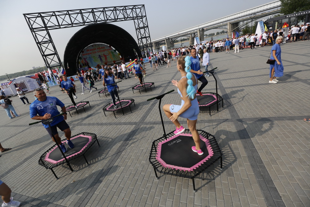 На Михайловской набережной в Новосибирске прошёл праздник, на котором выступили выдающиеся спортсмены, воспитанники городских и областных спортивных учреждений, а также прошли массовые игры, фестиваль фитнес-клубов и показательные выступления команд чирлидеров. Горожан поздравил мэр Новосибирска Анатолий Локоть.