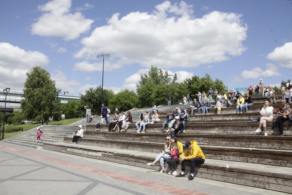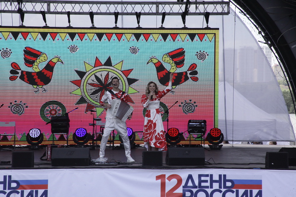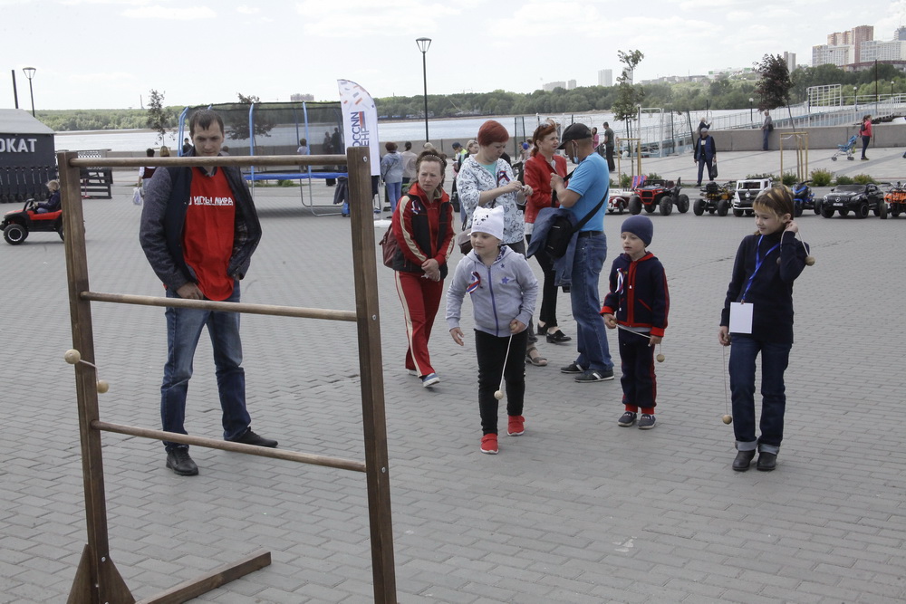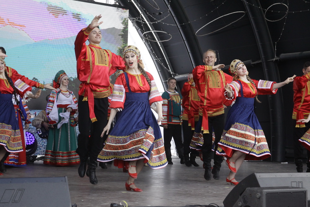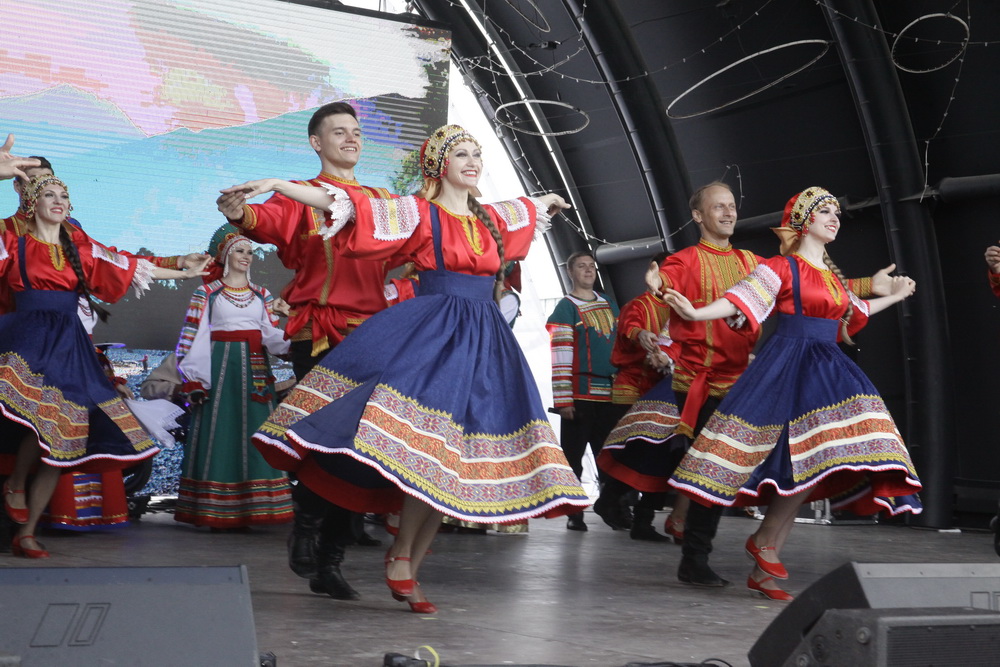 Основная программа развернулась на Михайловской набережной. Там прошёл флешмоб, концерт, также можно было поиграть в народные игры и поучаствовать в конкурсах.