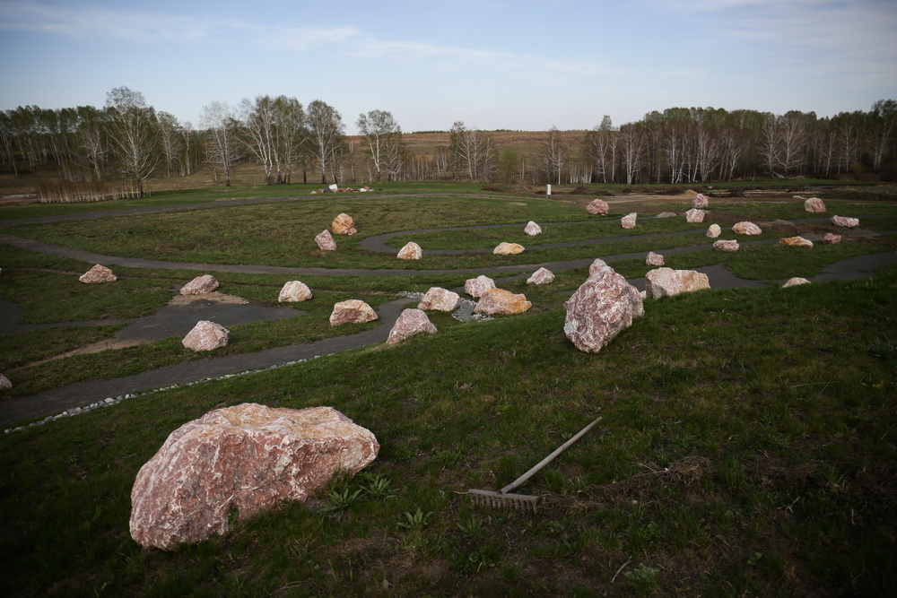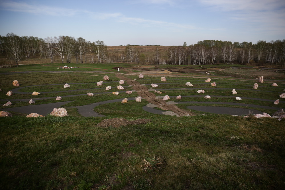 Есть в парке и объект с необъяснимым воздействием на психику человека — это копия критского лабиринта протяжённостью больше 2,5 км. Он составлен из огромных камней и приводит к стеклянному Монументу Истины на вершине холма. Монумент складывают из тонкого стекла слой за слоем, а затем, обтачивая, придают ему живую форму. Камни лабиринта привезли из Искитимского района, а цветные необычные камни для созвездий — с Алтая. В космической зоне построят планетарий, где будут показывать подкупольные фильмы.