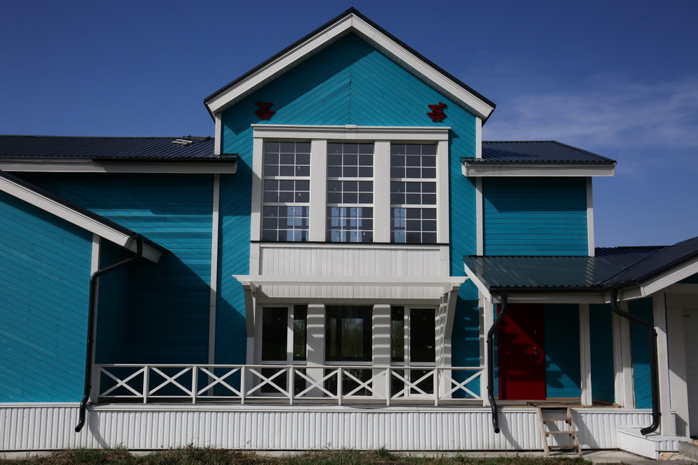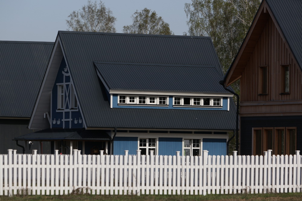 Ещё есть три абсолютно одинаковых по планировкам дома — синий, графитовый и красный, которые тоже сдают в аренду. Каждый из них рассчитан на четырёх хозяев, площадь квартир составляет 60 «квадратов». Кстати, договором ограничены параметры заборов в деревне — не выше 1,2 метра и просвет 50%.