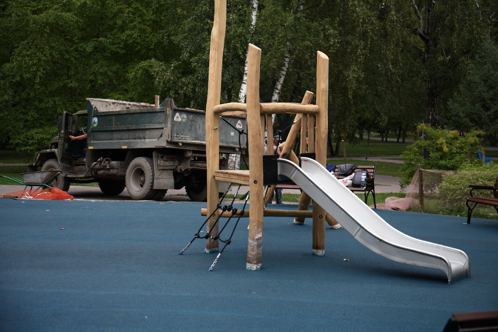 Деревянные качели и горка из Чехии появились в Нарымском сквере