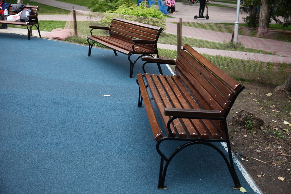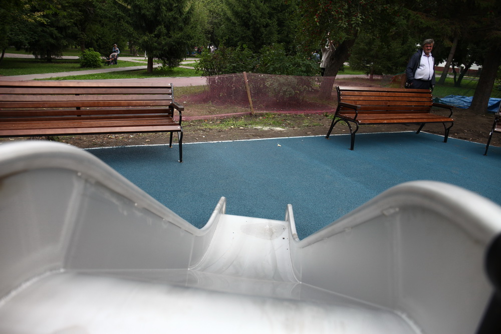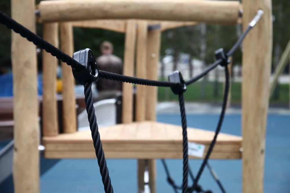 Дерево не требует пропитки, производители дают 20 лет гарантии — что с деревом ничего не случится, оно не рассохнется и не сгниёт. Везли игровой комплекс из-за Чехии. А древесину вообще производят в Северной Америке, где климат схож с сибирским. Холод и влажность, по словам подрядчика, материалу не страшны.