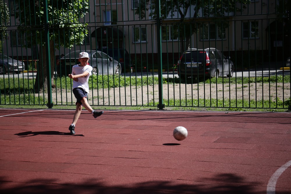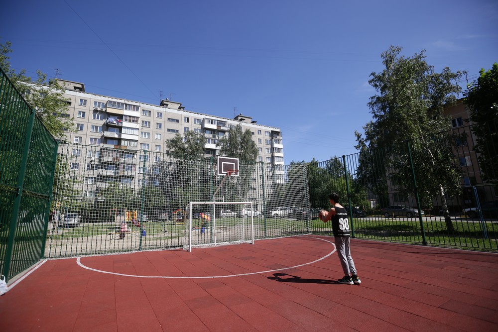 Новую площадку во дворе Дзержинского района оборудовали на муниципальные деньги. Потратили 2 млн рублей. Здесь сделали мягкое безопасное покрытие, установили кольца для баскетбола и ворота для мини-футбола. Вокруг поля — четырёхметровый забор. Раньше ограждение делали ниже, и мяч вылетал во двор. После замечаний от жителей проект скорректировали.