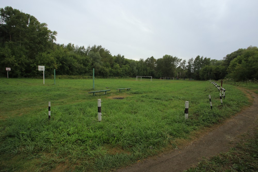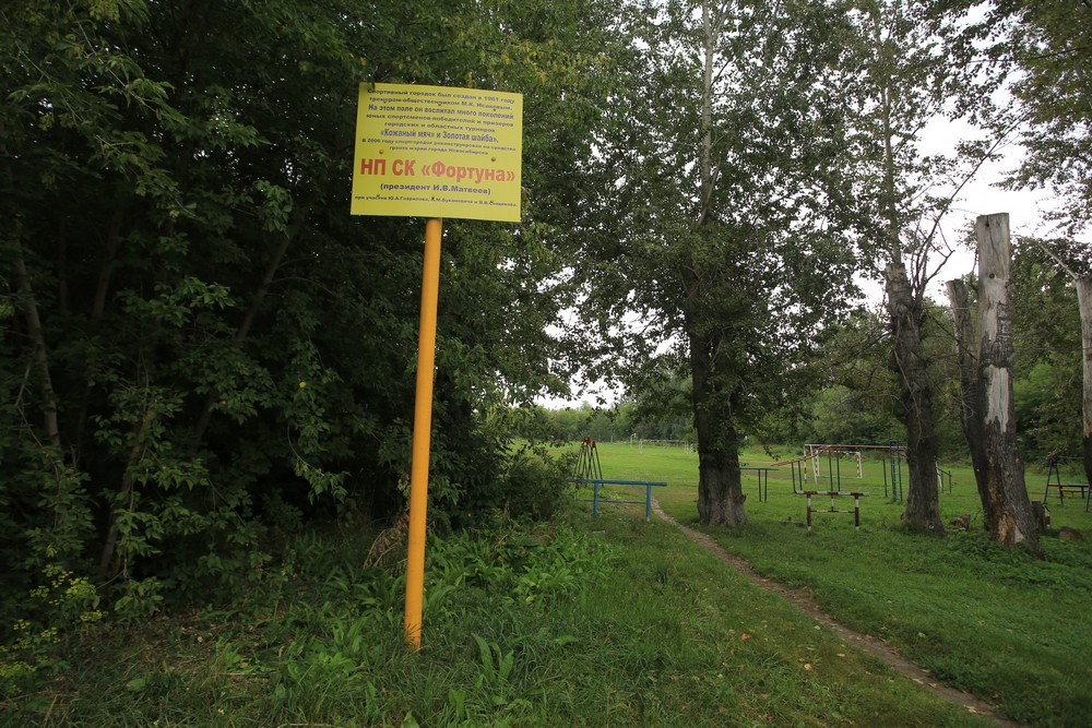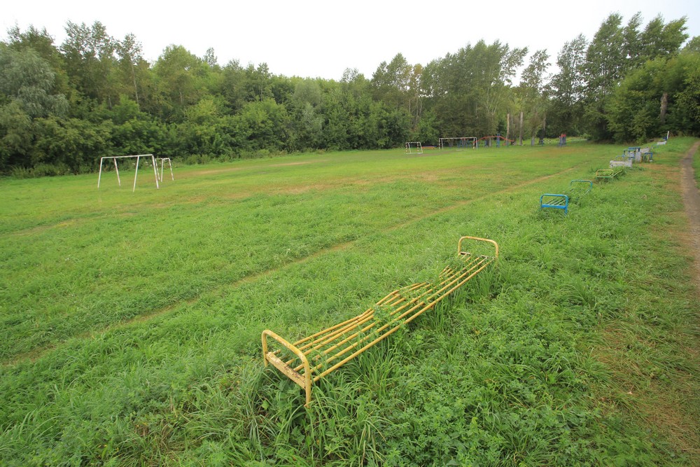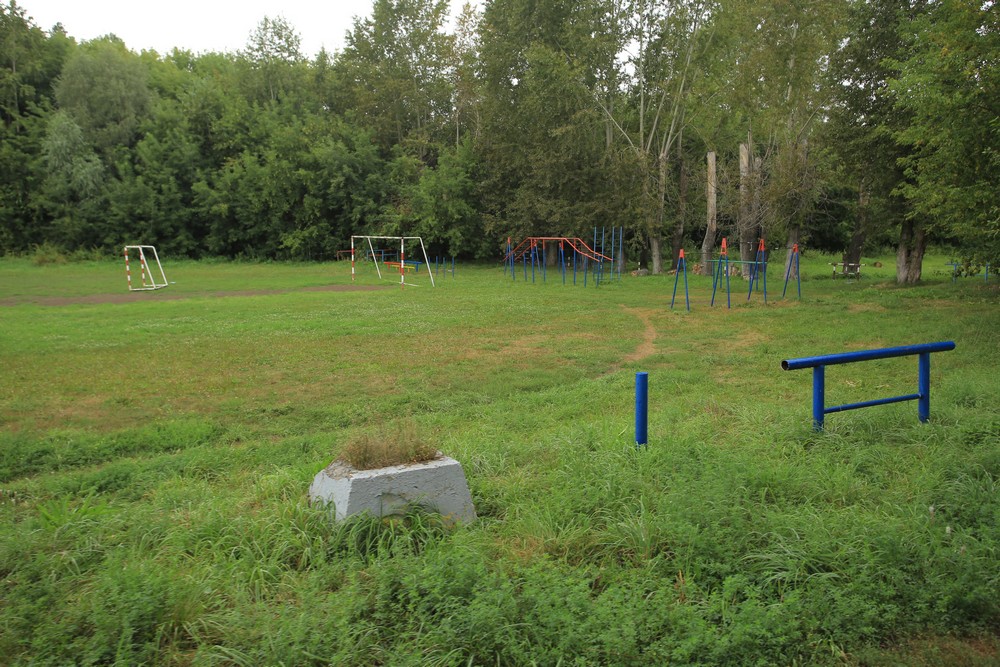 Сюда по вечерам идут погонять мяч местные ребята, а также приходят просто любители спорта, чтобы позаниматься на турниках или побегать. Однако сейчас спортплощадка в неприглядном состоянии. На футбольном поле большие кочки, а за воротами можно встретить как остатки от кострищ, так и коровьи лепёшки.